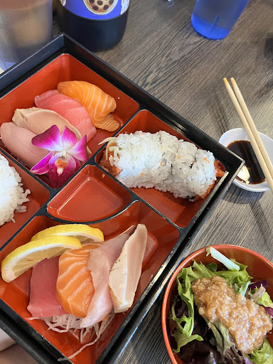 The food did take a while to be prepared, though this could be caused by the restaurant being a small establishment and thereās only one sushi chef. If you do come to visit, please be patient since everything is made to order. Once everything came out, I was pleasantly surprised by how large the portion sizes were. Both the sushi and sashimi were large cuts of fish and they were very generous with the amount. Everything tasted fresh and delicious, I enjoyed my bento box. The only thing I wasnāt the biggest fan of was the salad dressing, Iām not sure what the flavor was but itās not my cup of tea. Overall, this restaurant is worth a visit if you are in the Fallbrook area, the staff were amazing and we had...