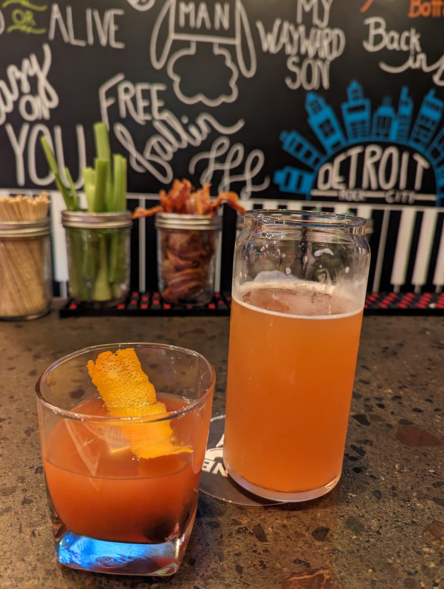 Read moreVery disappointed with our trip today. We wanted to give this place another try after a subpar experience last time in but unfortunately this will be our last time eating here. The atmosphere and decor is spot on and we enjoy the vibe but that's where it ends. We were seated today and after quite a wait, maybe 6 to 7 mins, were able to place our drink order. We weren't asked about appetizers at that point. We recieved our beers but no follow up on an order until the server returned at 30 mins after we had been seated to take our order. We ordered our appetizer and meal at the same time. It was another approx 10 mins until the appetizers arrived almost immediately backed by the meal. The food was OK, but not good enough to save this trip. As I came to the end of my beer I noticed that there was some type of scum INSIDE on the bottom of my glass that I was able to scratch off and that the whole bottom outside of the glass had some gross build up that I could scratch out with my fingernail. It was black and sludgelike. Absolutely disgusting. We were never offered the opportunity to order a second drink, had very little interaction from the server and it looked to be pretty understaffed. We were never offered to go boxes for our leftovers and had to track down another server to get our check since we had placed an order and didn't want the food to just sit there as we waited for our check to be brought. Overall not a good experience at all. Cleanliness is pretty important as is service and based on the experience today we will...