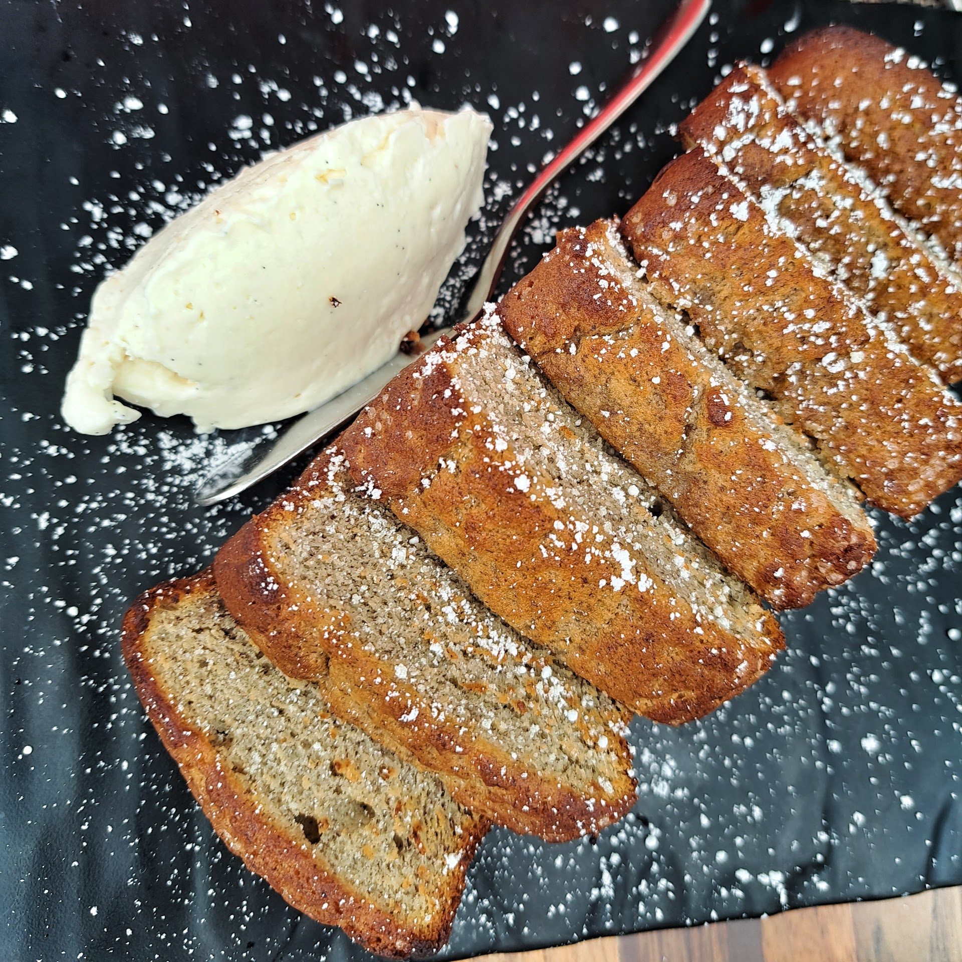 we could not decided between the candy cap churros or the banana bread so we got both! both were very good but if you're more disciplined than I am, get the churros. . .not only are they technically perfect, the use of candy cap mushroom gives them a maple flavor accent that is truly unique.