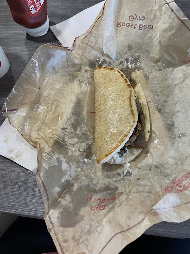 Read moreThe food sucked. They diluted the beef and cheddar special sauce to where you couldn't taste it and it was like water, causing a soggy bun! Seeped out and dripped all over my clothes so my errands were cut short. The crinkle fries were old. It had been 3+ years since the last time I tried Arby's because the food wasn't fresh. A different state too, but apparently they don't train employees how to serve 5 star fresh food. Service was rude because I asked for potato cakes, pointing out they stopped serving those about 2 1/2 years ago, but quick...whoopee! I would rather have FRESH FOOD!! The photo is after I got home and changed my clothes but it's clear what a mess it made, and how thin that sauce is! I hope my jeans...