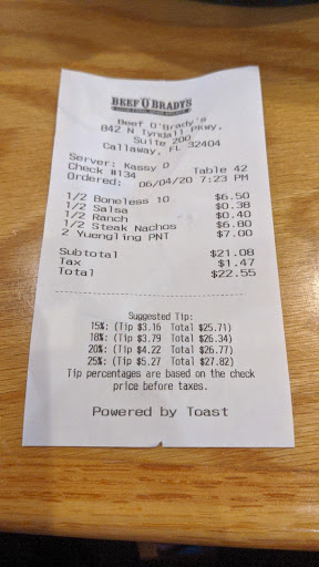 Read moreI have always loved Beefs. However, we went last night for a birthday dinner and were very disappointed. There were only 2 waitresses. One was handling the bar, take outs, tables and anything else she could do. The other had a 12 top she was waiting on. Upon entering just about every single table was dirty and stayed that way for the duration of our time. It took about 15 minutes just to get a menu and order our sodas. Our appetizers were over cooked and took forever to get, the steak, chicken and fries were all cold by the time they arrived. The wait staff was friendly but were overwhelmed. There was ZERO presence of a manager on duty and being in management I wondered what happened to shifting to assist and overseeing the operations. Needless to say it took an hour and a half for 2 people to be served cold food. The waitress done her very best but couldn't keep up. The manager was said to be in the office sitting down or in the kitchen with the cooks. During our time the cooks kept coming out and watching the football game s on TV. There was a lack of leadership and teamwork. This in turn has cost this establishment several customers. On our way out the family of 8 got up and the mother said this is it, we have waited long enough and they left. I will never spend my hard earned...