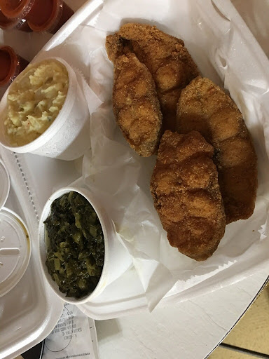 Read moreI was craving soul food so my friend and I decided to stop by to eat and have some drink but mainly to eat. The parking lot was tight and small however the inside is very spacious. We sat at the bar which is huge (a plus). The bartender Jade, who was AMAZING, served us right away. They have a separate sever who comes to take your food order in which Jade had to go inform her that we wanted to order food. We placed our order no issues. The drinks were great, the food came in a nice amount of time and it was hot and fresh. I ordered catfish fillet/wings combo dinner. The chicken and fish was seasoned and fried to perfection. It came with two sides of my choice (candied yams and red beans and rice) Both sides lacked seasoning, I was very hungry so I ate the red beans and rice but I sent the canned yams back for greens they were too hard and flavorless. The server took them back with no issue and replaced them. The greens came out fast they were hot but also lacked flavor/seasoning and very mushy like canned greens. But because they were accommodating, I simply asked for salt and hot sauce to help with what the greens lacked. Overall I had a great experience. Service was great, place was clean, food with the expcetion of the side was pretty good. I will be back hopefully they perfect the sides. Otherwise I'll just get fish wings and fries....