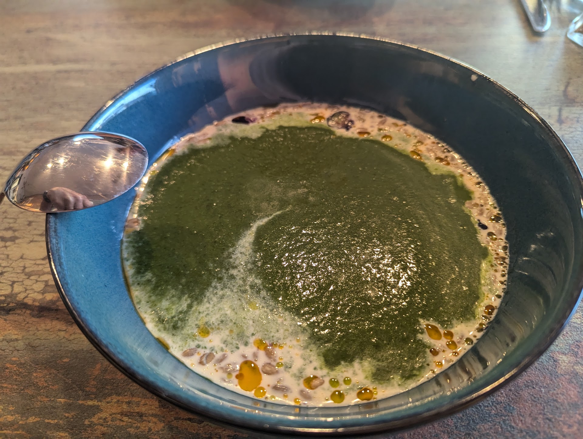 The server was excellent and personable. Both of our entrees and my soup were delicious and my two had a very artistic presentation. Recommend what we had: steak chaufa, rockfish with beet smear and seasonal veggies (the sauce is normally on top but I had asked for it to be on the side), and the spinach-squash soup. The soup was mixed tableside, which we hadn't encountered before. It had a surprise ingredient that I would not have thought of adding to this soup but which worked great.