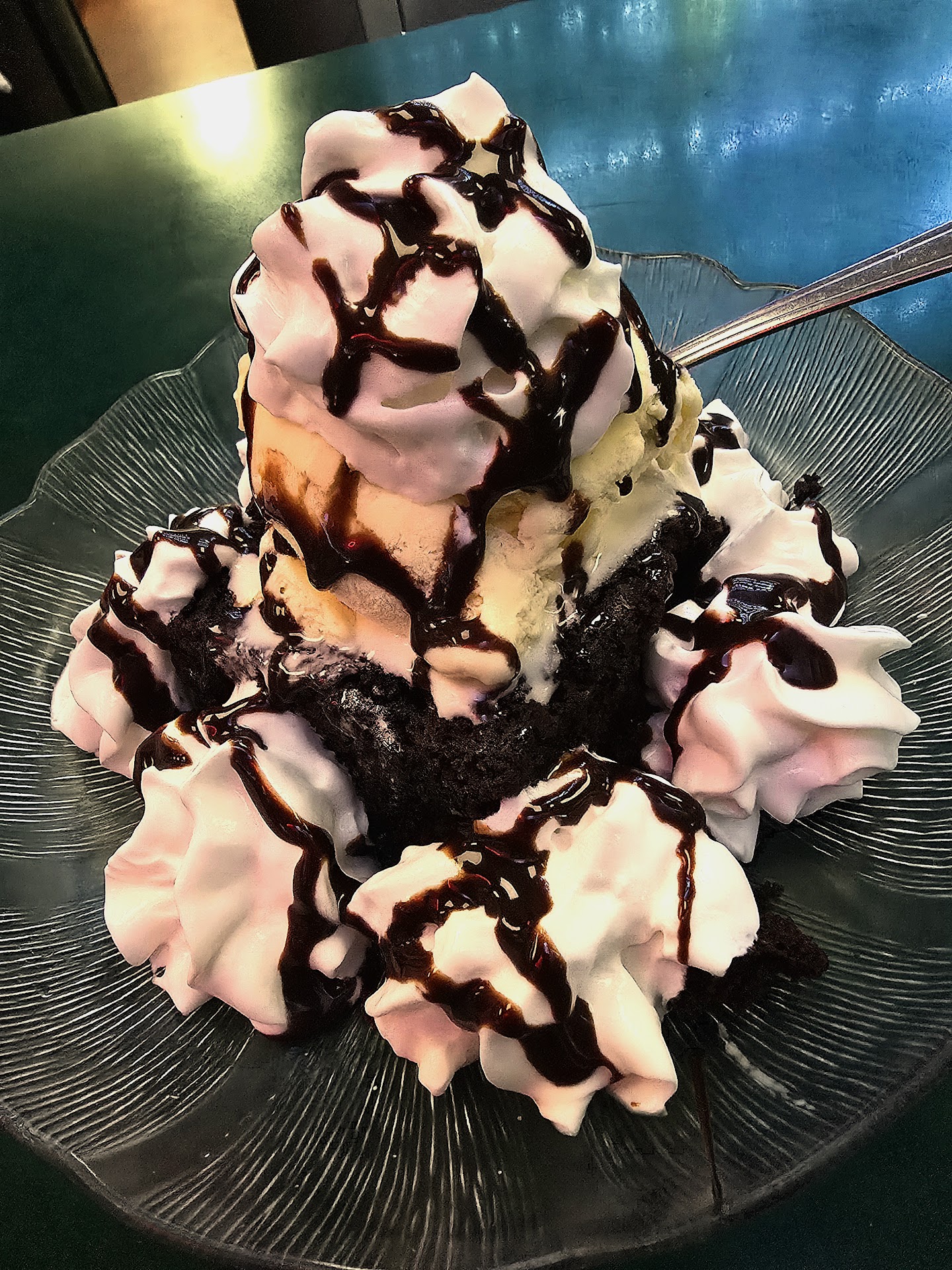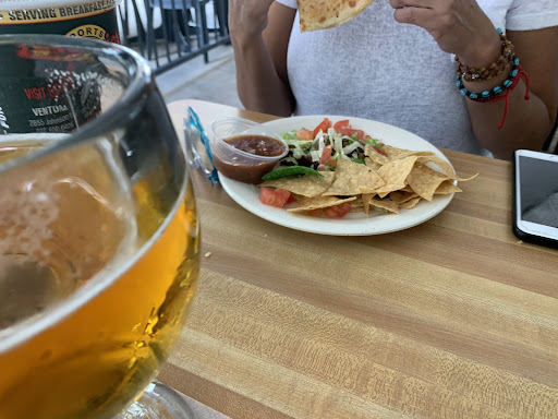Had mozzarella sticks as an appetizer and a chili cheeseburger for lunch. The friends had beef tacos and cheese quesadillas. Beers were cold and in big goblets.