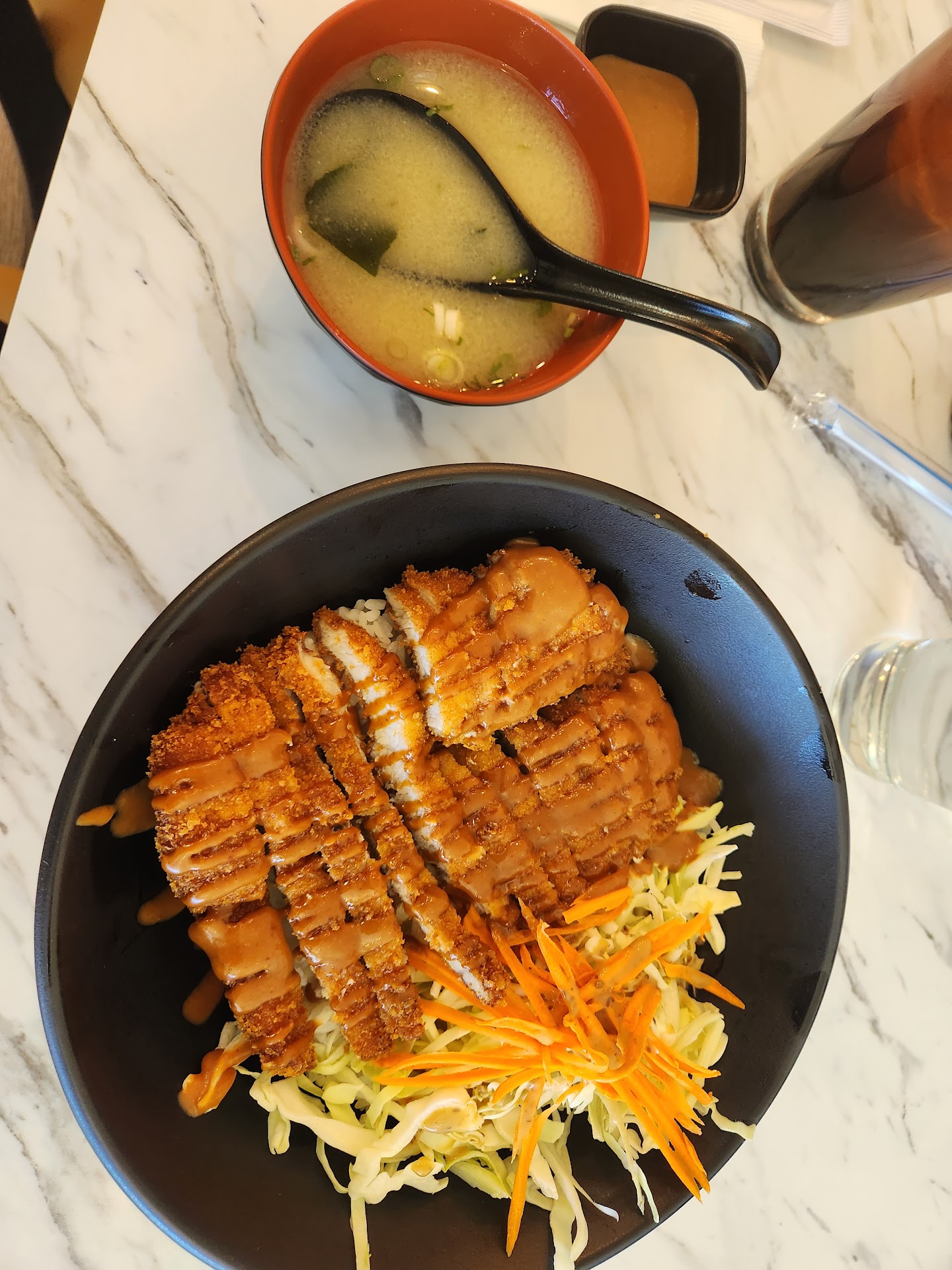 I got the pork cutlet bowl. It came with some salad, rice, and a miso soup. The pork was perfectly crispy on the outside and nice and tender on the inside with a delicious sauce drizzled on top. The portion size was very generous and very filling!