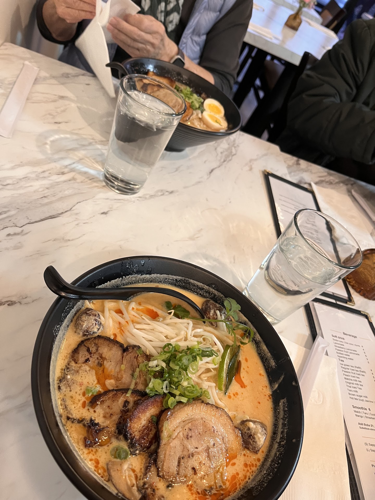 This was my mom's first introduction to ramen, and she liked the ramen she got (she went with a classic tonkotsu ramen but decided to add chicken).