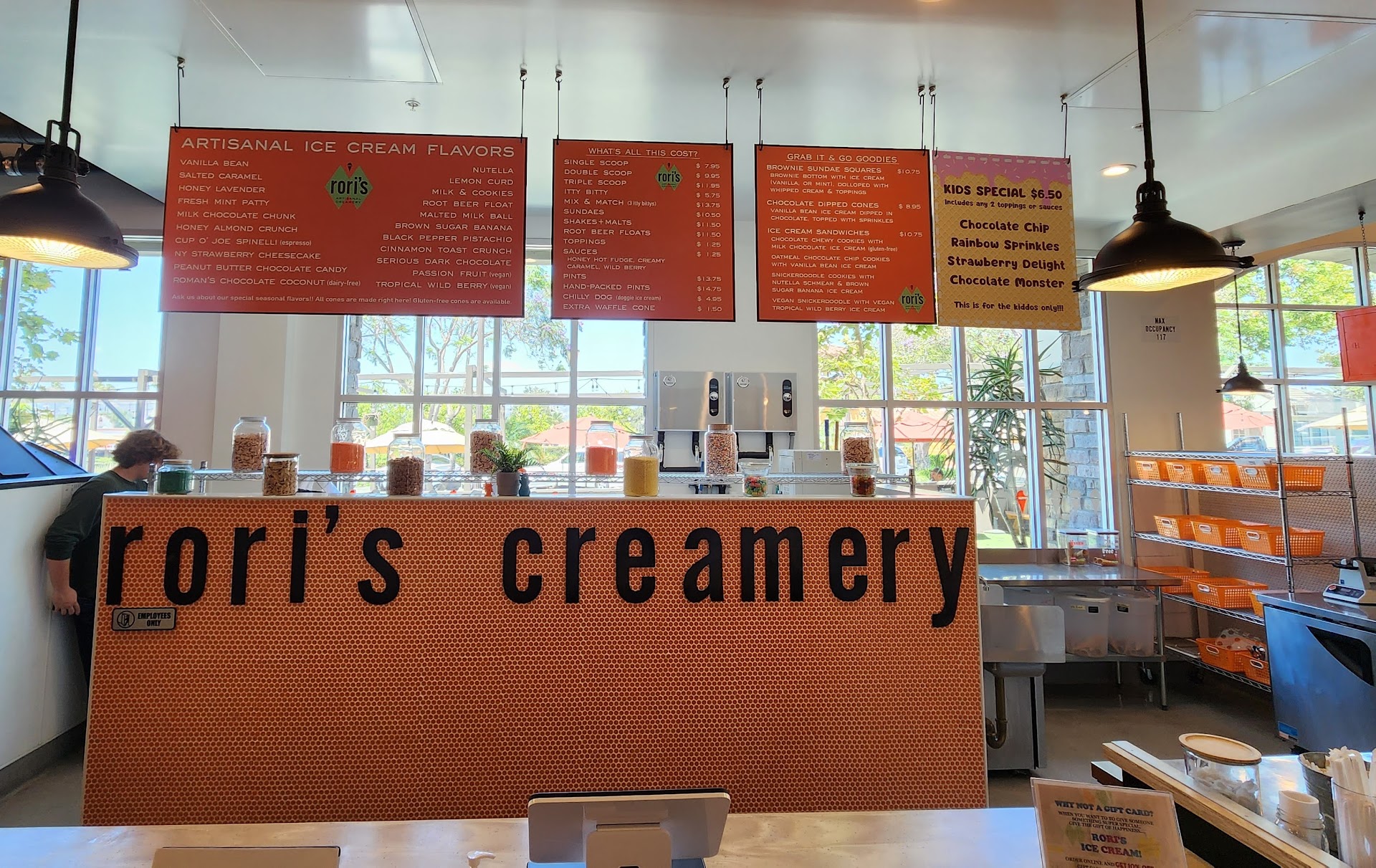 As a vegetarian with a lactose intolerance, I appreciate establishments with options to appease individuals dietary preferences. Rori’s Artisanal Creamery has many fresh vegan options to enjoy on site, as well as stocked vegan pints and ice cream sandwiches to take home to enjoy. I especially enjoy the Tropical Wild Berry flavor (vegan) on a vegan cone; it is reminiscent of the Flintstone ice cream from my childhood. Very tasty and delicious. They also have a small courtyard, with several seating options, inside shared with Topa Topa and Freda’s. Everyday between 3pm and 4pm (Kids Happy Hour), kids get a free scoop of ice cream with every adult scoop purchased; that’s a great incentive to stop by...