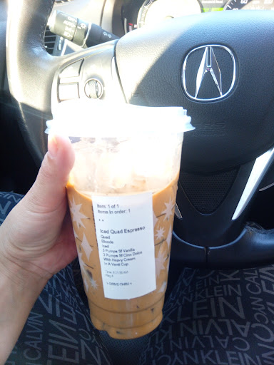 Ā Ā Ā Read moreThe food and drink here is excellent, and they do a great job with COVID. There is a bathroom inside, and as of now they have drive thru, mobile order, and walk-in. If you choose to walk in or mobile order, you need to wear a mask, as this is part of their rules. There is no indoor or outdoor seating either, and dont try to sit at the tables, someone will come out and tell you to get off. The food and drink is definitely overpriced, and that brings it down for me, as well as the amount of ice they add. I usually walk in so this isn't a problem for me, but the location of the drive thru doesnt really work. The cars get backed up, because everyone loves Starbucks, and then it wraps around onto the street, and backs up that entrance/exit of the...