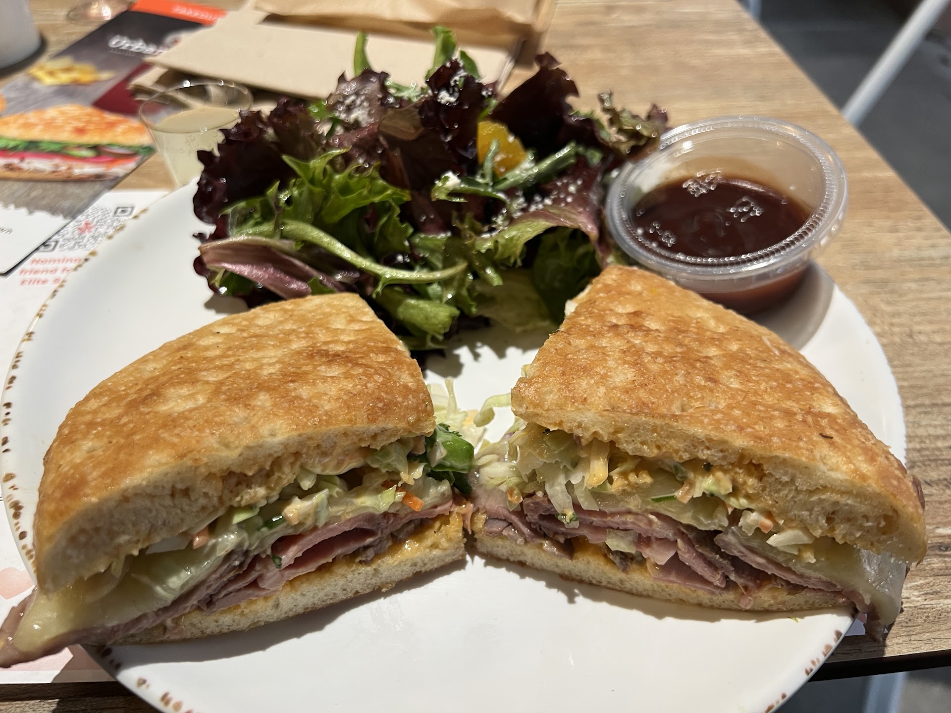 Read moreMushy sandwiches. Meat all in the middle of the sandwich. Had to rearrange the ingredients. No dill pickles. Only bread & butter pickles. So I asked them to leave them off. Of course they still on the sandwich. Ordered Pastrami. No traditional dressing to go with it-Neither Russian or Thousand Island. What sandwich shop doesn't have the traditional dressing. This place tries to be too cute with it's ingredients. Bought 7 cookies. 2 were under done. The others were stale and brittle. At $3 each it was ridiculous. Outside does NOT allow for 8 people to sit together. Worst of all the bathroom had urine on the floor and couldn't be used. There were 6-7 employees and only 4 other customers there. We went back to use the bathroom about 20 minutes later. They told me they didn't have time to clean it yet. All things considered it is not a healthy. In fact the, Health department should be called. This is a FOOD establishment after all. Would recommend to skip this place. Urbane Cafe could be considered "False Advertising". Also noticed that the newest reviews were over 2 years old. Perhaps things have gone down...
