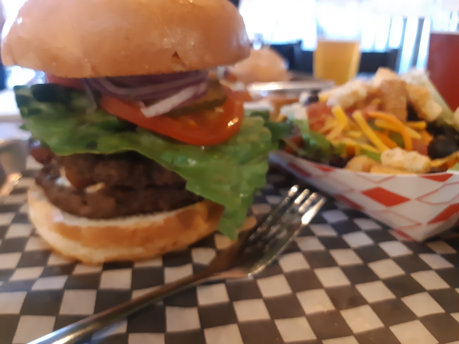 Read moreLet me just say first off, I love pub food! In no way, shape or form is this place a fine dining "special date night" kinda place. Unless, that's your jam. Then, by all means, come, enjoy your Anniversary! I was craving something greasy & filling, and the bleu cheese bacon burger did the trick! Totally hit the spot in every way! I paired it with a side salad & a pint of their Marionberry Cider. Divine!! The portions are big enough for 2 or will at least keep a large man with a hearty appetite from picking off your plate when his meal is gone. The hot wings were the size of my hand and oh so delicious with the sriracha/sweet chili sauce. The atmosphere is what you'd expect from a good pub, along with an inviting pergola for outside dining. I'd driven by several times imagining sipping a cider whilst reading a good book or a good conversation with a friend. However, my dreams were quickly destroyed when the train came by and muffled our voices. Shortly thereafter we all began slapping our bodies like we were the new eccentric entertainment for the night. Little did we know, the mosquitos were out in full force! I was literally eaten alive. I'm still itching a week later. I love this place and want to enjoy it more, but may I suggest a bug zapper or low scent citronella candles. I'm not sure about you, but I'd rather not have to douse myself with Deep Woods Off prior...