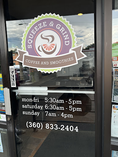 What a gem I have missed out on until now! At first I thought Squeeze & Grind was more pickup, not sit in. Better late than never! Decided to try this adorable location in Downtown Camas with my husband and I have been back 3 times since with more scheduled meetings here!! Why? I love local businesses and am happy to support them, especially when the atmosphere is one of good vibes, positivity and is welcoming. I have encountered different employees each time I have visited and excellent customer service has been the norm. Every person there is courteous, has suggested items to try, they are definitely serving up an attitude of appreciation for customer visits and overall genuine pleasantry. It is small inside with a little stand up bar (or stools), a couple tables and 3 tables outside. Such a nice place, my business partner and I have made this our go-to meeting spot. The coffee is tasty and not bitter nor overloaded with sugar. The pastries are fresh and well made. There are coffee specials offered too: Check out the variety of smoothies from the photo of the menu. Pricing is more reasonable too! And here is a bonus: there is a drive up window as well as a walk up window…sweet deal! I LOVE the vibe of a neighborhood coffee shop, and given I do work at cafes, I’m not distracted by super loud music where I can’t take a call, have a work conversation or focus on what I’m doing. An all-over good spot, a place you should mark on your list to frequent. I’m...