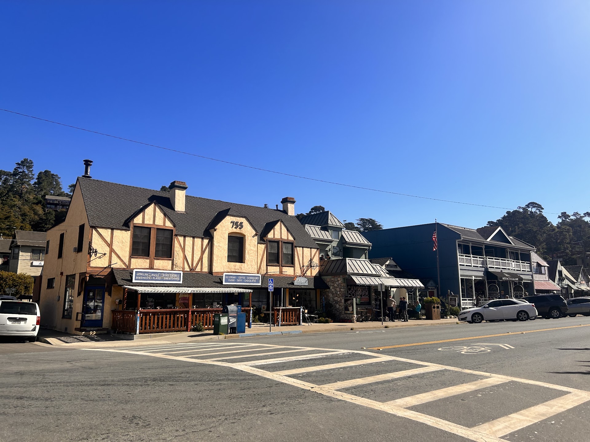 There is a second floor "club" with comfortable couches, and an balcony at the top of a narrow, steep staircase that offers a great view of Cambria's Main Street, but is not wheelchair accessible. There are no public restrooms in the shop.