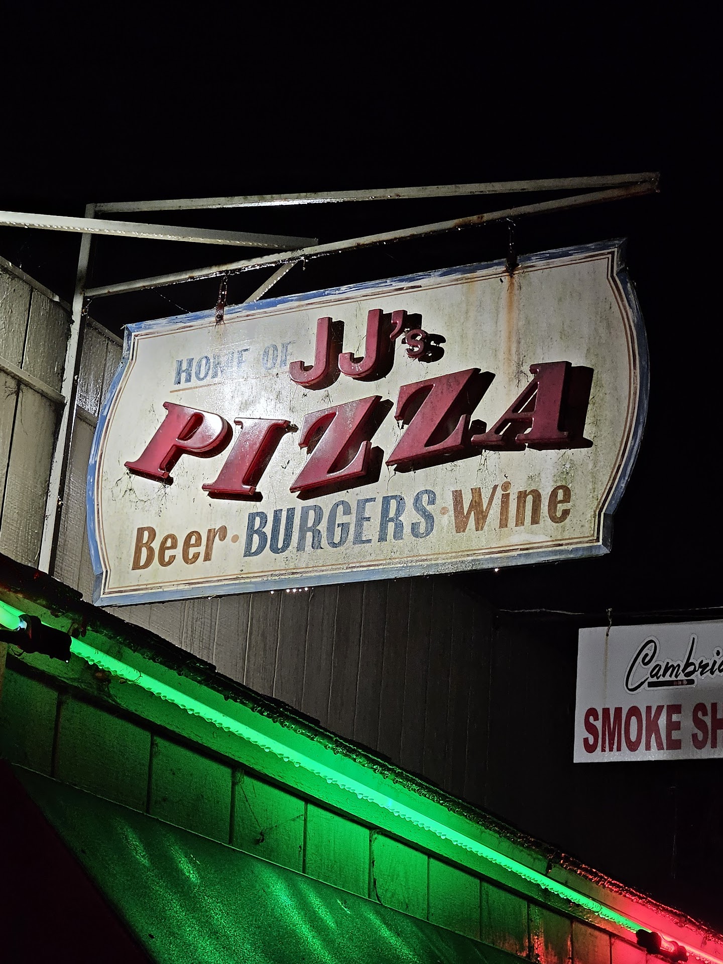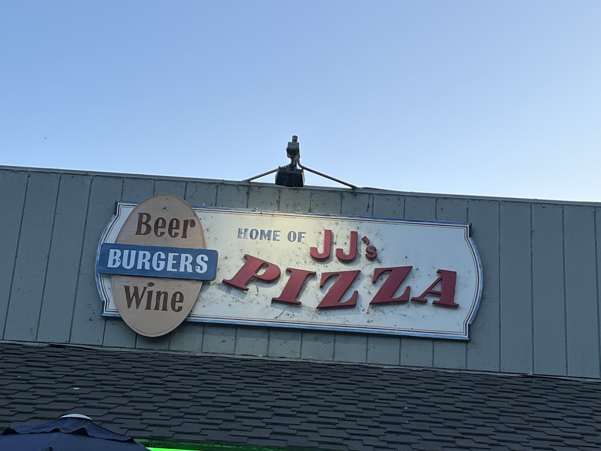 When I first cast my eyes upon the glorious oasis that is JJ's Pizza, I had just finished a strenuous bike ride against a strong headwind up the beautiful Route 1 with my homeslices D-dawg and N-dawg. The weariness me and my travel companions were experiencing had drained our stoke tanks and we desperately needed some nourishment to lift our spirits.