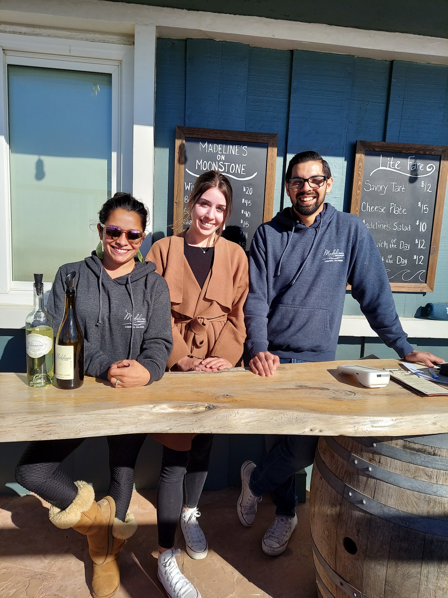Madeline's on Moonstone at Cambria Shores Inn is a great place for wine tasting. The patio seating has beautiful views of Moonstone Beach across the street. It has a very nice relaxed ambience. Oscar, Taylor and Giovana were the servers today. They were wonderful, very friendly, cheerful. and welcoming. Oscar provided information on the red and white wines for sampling and answered all our questions. You get a complimentary free sampling if you are a guess at this inn. It's $15 for five pours if you are not. Their bottled wines are available...