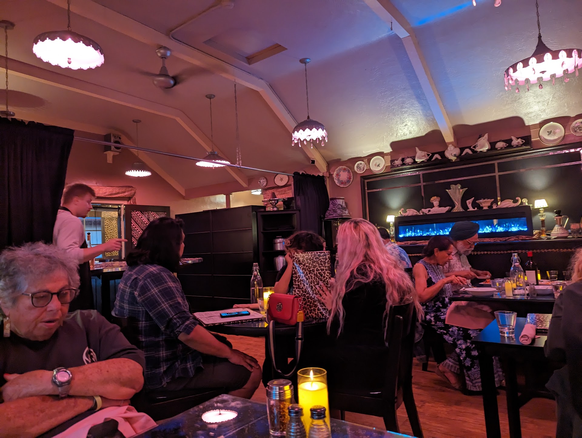 INTIMATE DINNER ! My wife and I arrived at our Airbnb 5 bedroom house with huge ocean view around 4pm on Wednesday after a very long drive ( almost 6 hours on the road ) from Irvine. We were in Cambria for a one week vacation to celebrate my wife's birthday. After unpacking our luggage and lots more incl our espresso machine we didn't really feel like cooking dinner. Refreshed after a shower and an ice cold hazy IPA ( always bring my own beer when possible ) I suggested to my wife we head into town. We haven't been to the far side of Main St very often or recently ( it's been 12 years since our last vacation in Cambria ) but for some reason we kept driving until we spotted this place...or more so the huge sign. After parking our wheels on the street we stuck our heads inside the front door.....very cosy. OOPS ! We attracted the attention of a male server who informed us there would be a 45 minute wait for dinner. The place looked interesting so we decided to take the last remaining table. Scott the lone server looked like he had his hands full taking care of everyone in the small restaurant ( seats 18 ). The next couple who walked in the door 5 minutes later were politely told by Scott that they could not be accommodated...to reserve a table another night. Somehow Scott managed to grab us a glass carafe of cold water and fill glasses. In the meantime Scott told us the owner was a lady named Victoria also the chef / server. BEER ! I asked for the Firestone Walker 'Union Jack" IPA which hit our table ice cold with a cute chilled glass ( 7.24pm ). My beer tasted very refreshing. AND THEN ! A party of 6 paid and left. FOOD ! Our tummies were screaming for food after just cheese & crackers around 1.30pm at the Tesla Supercharging Station in Goleta. APPETIZER ! The Roasted Cremini Mushrooms, baked with cheese and served with Garlic Bread looked too good to pass up. It arrived at our table ( 7.45pm ) courtesy of Victoria direct from the kitchen. It looked very appetizing and tasted fabulous. ENTREES ! My wife dillied and dallied between a couple of items on the menu ( loves lasagna ) before finally choosing the Rolioli ( homemade pasta filled with ricotta pesto-cheese and baked with your choice of sauce - marinara, puttanesca, mushroom cream or butternut squash served with garden vegetables )...my wife selected the marinara sauce. I decided on the Stuffed Portabella Mushroom ( organic portabella mushrooms, stuffed with organic red & brown jasmine rice, porcini, onion, cheese, with garden vegetables ). Our pasta dishes arrived together ( at 8.04pm ) and looked very generous serves. My wife told me her Rolioli tasted okay but should have ordered the lasagne her fav. I thought my Stuffed Portabella Mushroom tasted pretty decent...a lot going on. GETTING LATE ! We struck up a conversation with a fun couple dining at the bar. DESSERT ! I asked Scott the server about dessert and he said there were a couple of ice cream sandwiches left......Orange & Pistachio Cookie with Vanilla Gelato. Yes please. It came out simply presented on a dish. ( 8.19pm )...it was frozen so it took some getting through but was quite delicious. The orange and pistachio hit the spot. We enjoyed our dinner visit here. Excellent service from Scott...