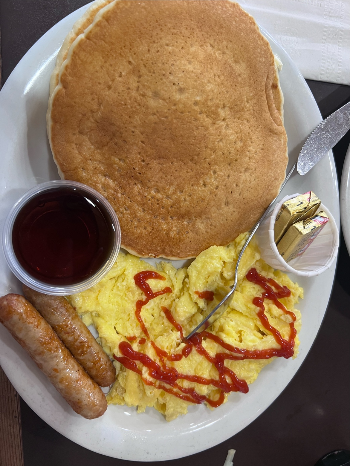Read moreWe were driving to the Antique store in the same shopping center, and we stopped to get some breakfast. The had indoor and outdoor seating. The inside kinda spelt funky. So we sat outside. But other than that, the restaurant is VERY kid and wheelchair user friendly. The service was fast and our waiter was incredibly sweet. They didn't have a lot of publicity, but they deserve some more. The food was INCREDIBLE! My mom and aunt got the grits with their meal and they said it was very good. I got the cinnamon roll fench toast, and OH MY GOSH, it was sooooo good that I need to make it. Service was good and fast. She made sure our drinks were always filled to the top, and we had everything we need. I...