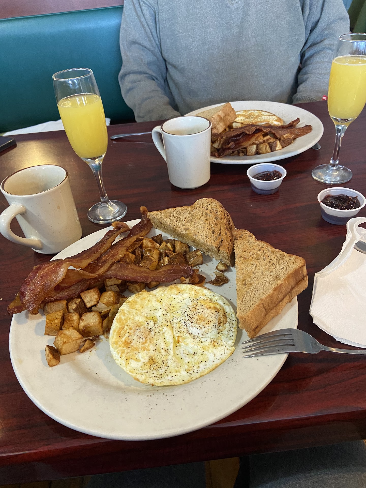 This morning when we decided to get breakfast take out, we called and no one answered. They're usually very busy so we waited a few minutes and then called again. An angry man answered and informed us that they were closed. We had checked the hours on google and it said they were open so out of confusion I said "Oh, you're closed? Ok." And the angry man then said "We've been closed every Monday for 12 years!" Well... how about you drop your attitude and treat your potential customer with mild decency.
