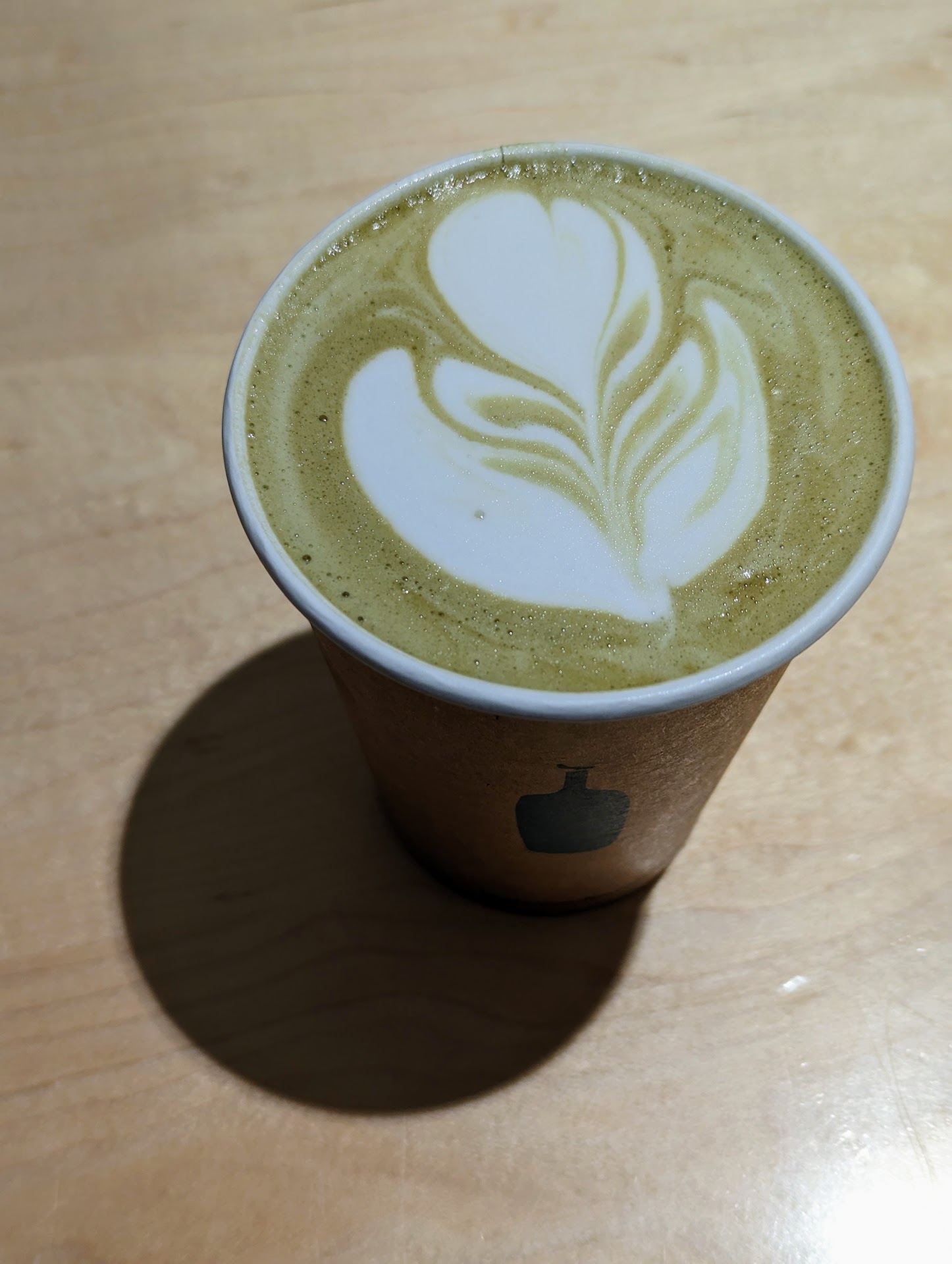 Blue Bottle from my experience is not bad at all, but I am basing this review solely on my experience here. I ordered the hojicha latte here and I either didn't hear my name get called or they didn't call it. I was the only person standing around waiting in front of them for several minutes before I asked if my drink was ready and they told me it had been sitting there waiting.