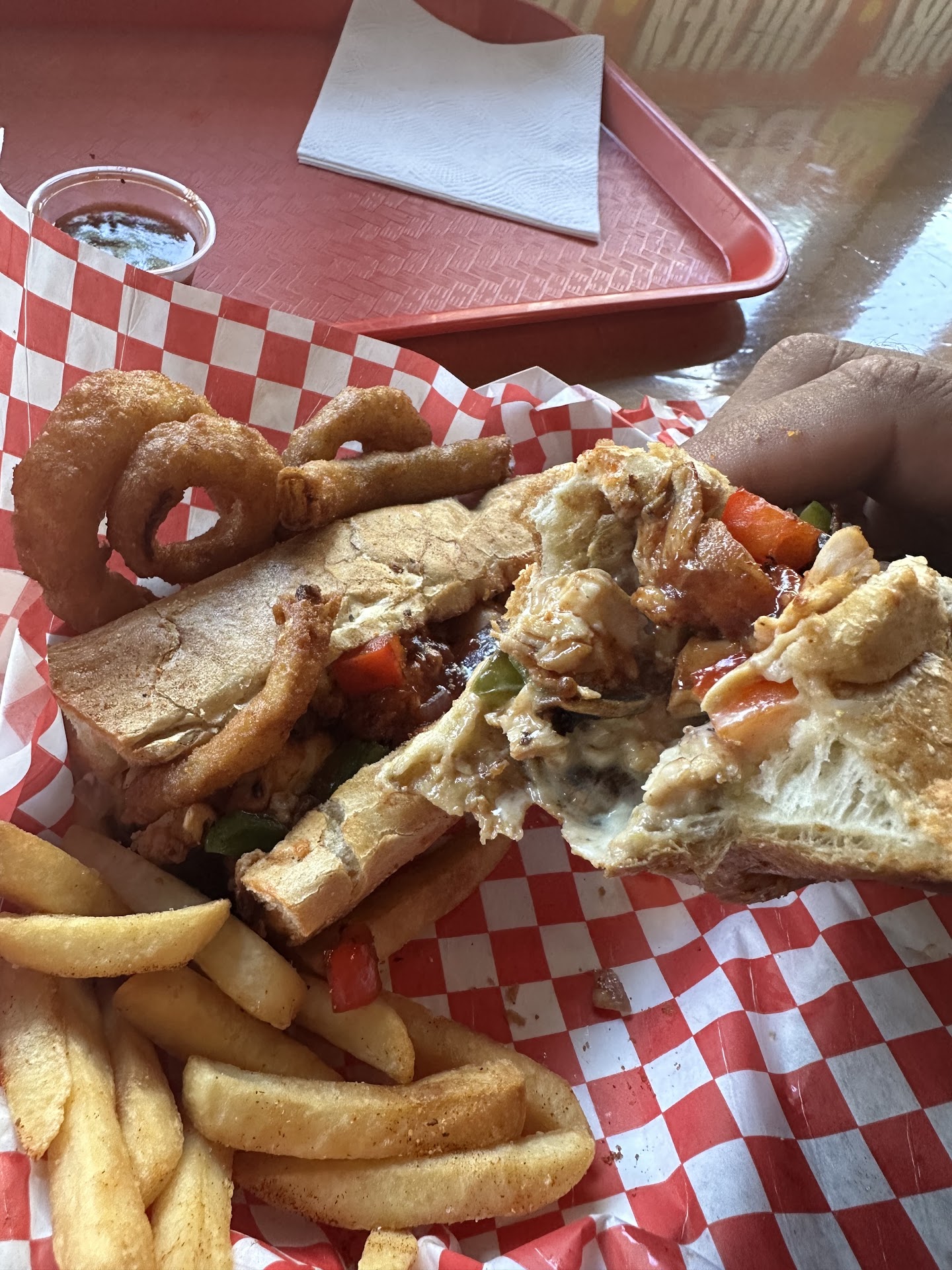 Try the onion rings. I'm not normally a fan of them but they're spiced and perfectly crispy here. Delicious!