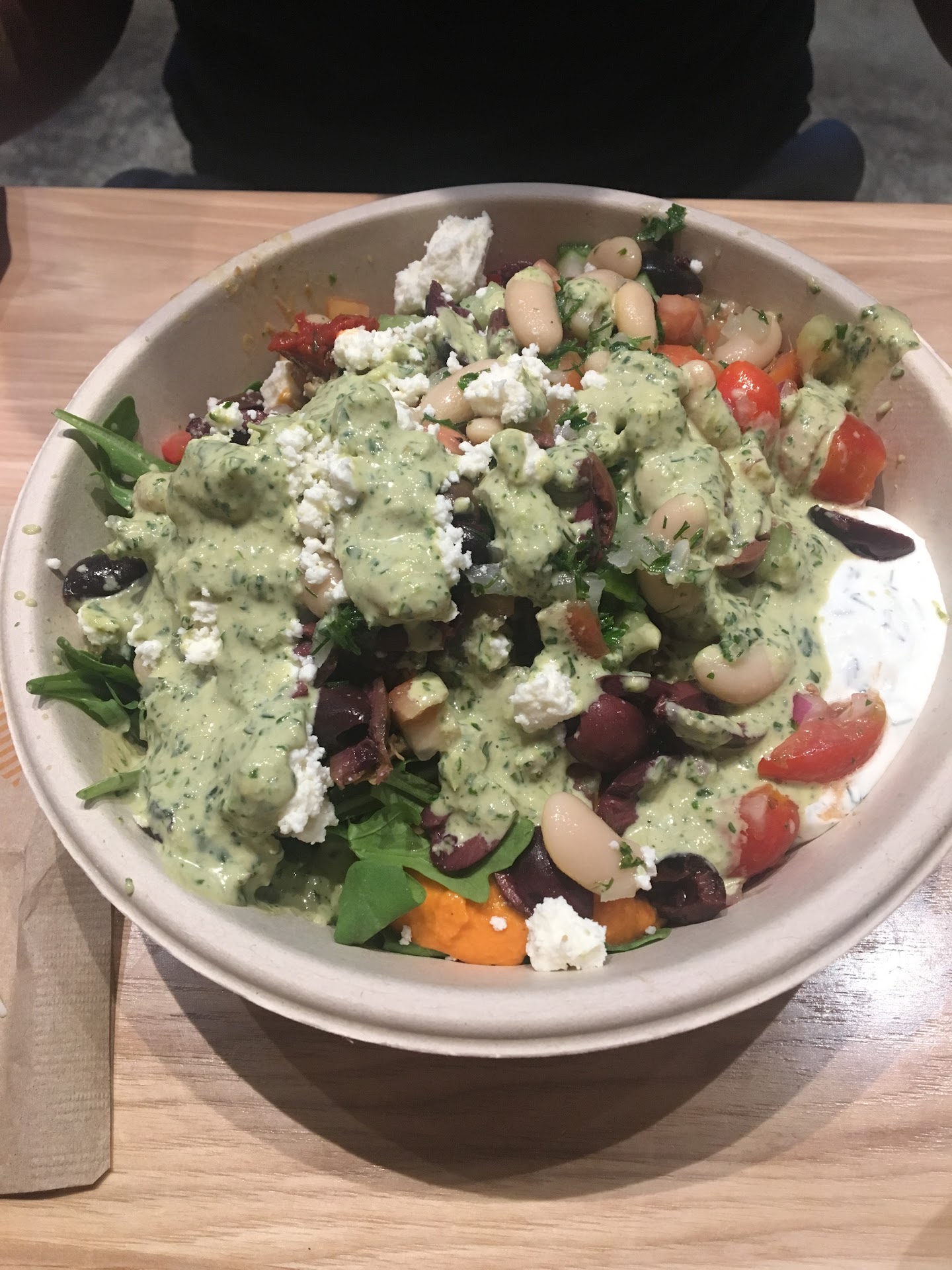 I asked for this, and the worker was confused. Fair enough. I explained that I wanted hummus, not rice or greens, as the base for the bowl. She asked if I wanted hummus on the side. I said no, I don't mean a side, I mean in the bowl. She called over another worker. The worker was also confused and asked sequentially whether I wanted a side of hummus, or hummus with pita, and each time I explained that I wanted it as the base for the bowl, in the bowl, instead of rice or greens. I offered that if this was not an appropriate order, I'd be happy to just do rice. He understood, and explained to the first worker how to do that. When I asked for a little rice in the bowl, she acted like she thought I was crazy, then put 2 huge scoops of rice in the bowl. I didn't bother explaining that the whole point of what I was asking is that I wanted a larger ratio of hummus to rice, and that now when I went to go eat the bowl I'd have to remove some of the rice, but this would not be easy because the hummus probably stuck to the rice. Overall, if I am not allowed to order a bowl with hummus as the base then fine, that's not a big deal. But if you have ever been to any other meddeterranian restaurant, especially ones that serve food chipotle-style, then you'd know that it is not unreasonable to ask for hummus at the bottom of your food bowl. Plus, it should not have been this difficult to explain that I wanted hummus, not rice or greens, at the bottom of the bowl. At the very least, I wish that I had not been looked at as if I were crazy the whole time I...