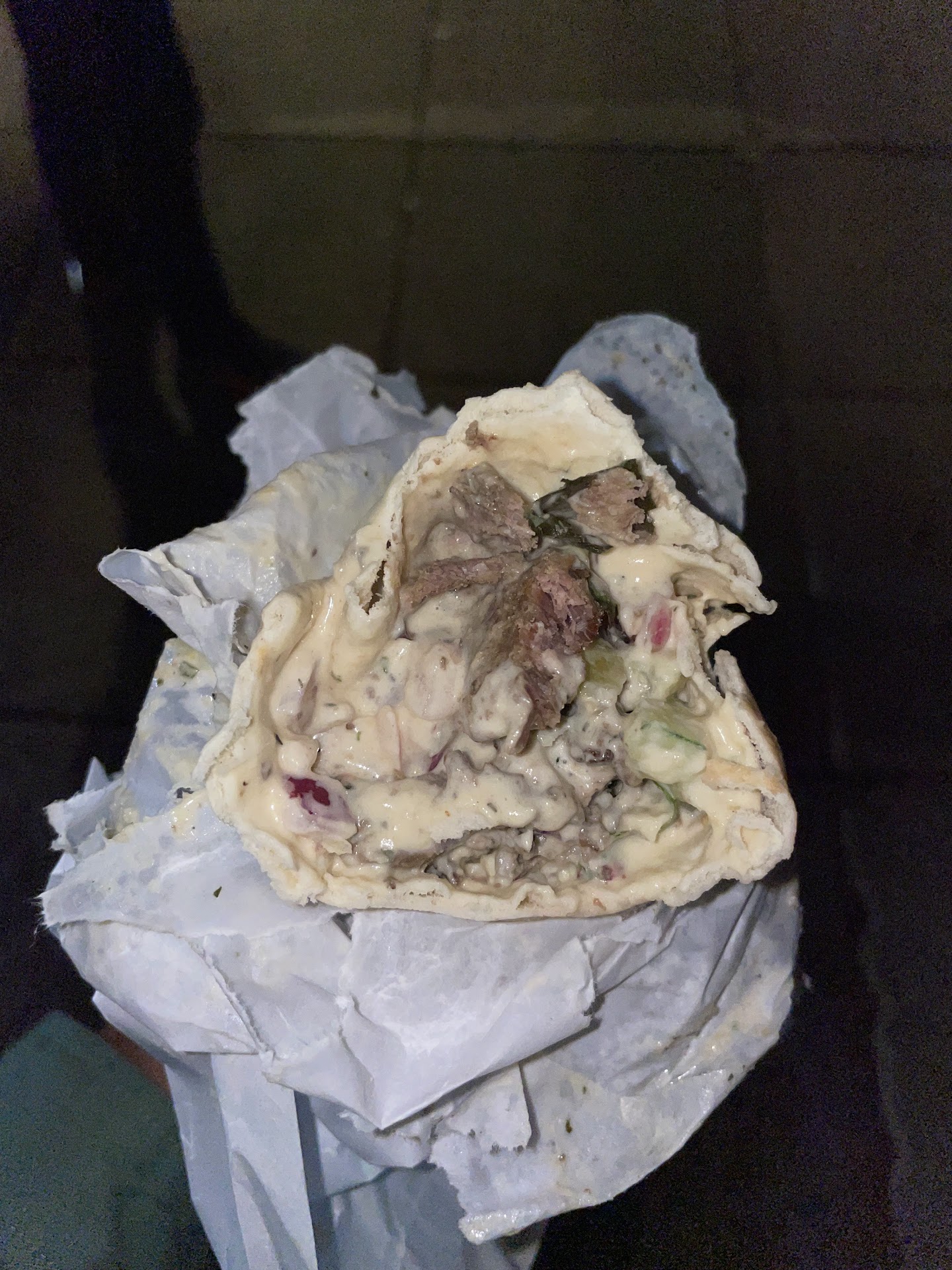 Read moreI stumbled into this place with a few buddies after having quite a few at a show in the area. Like inebriated moths floating toward the light of their store front the smell of middle eastern spices grabbed us by the shirt collar and led us in. We found ourself standing behind a clean glass counter inside a small building where we were promptly met with fast friendly service at an ungodly hour. Not being familiar with the menu and being a few steps from a state of mind that would allow us to make split decisions, when asked what we wanted we simply said whatever is fast and ready to go. The man behind the counter proceeded to throw together what I can only describe as a masterfully crafted blend of lamb, tahini, vegetables and some secrets long passed down through generations....all at a reasonable price I may add.