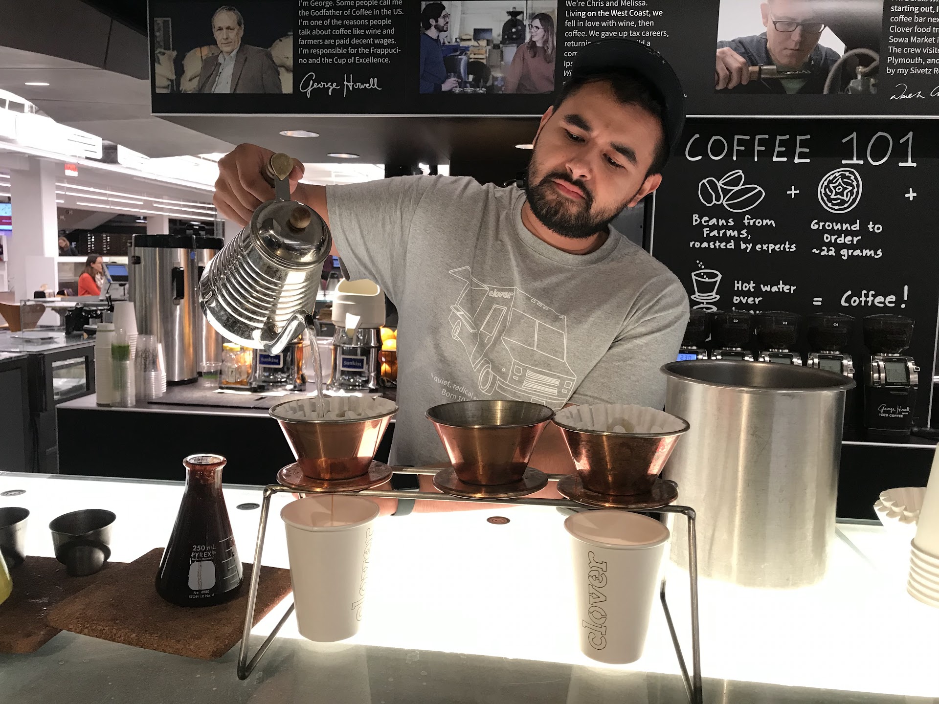 Read moreWhat a gem! I love Clover and inevitably end up eating here once or twice a week before my classes. Food is all fresh, local, and vegetarian, and I appreciate that the items change with the season. Big recommendations: Chickpea fritters, Roman tomato soup (!!!), and paying the extra $1.50 to get a platter. Hummus portions are BIG. Staff are all very nice imo. Wish they used cooler water for the hot green/oolong tea so it doesn’t taste burnt - but that’s my...