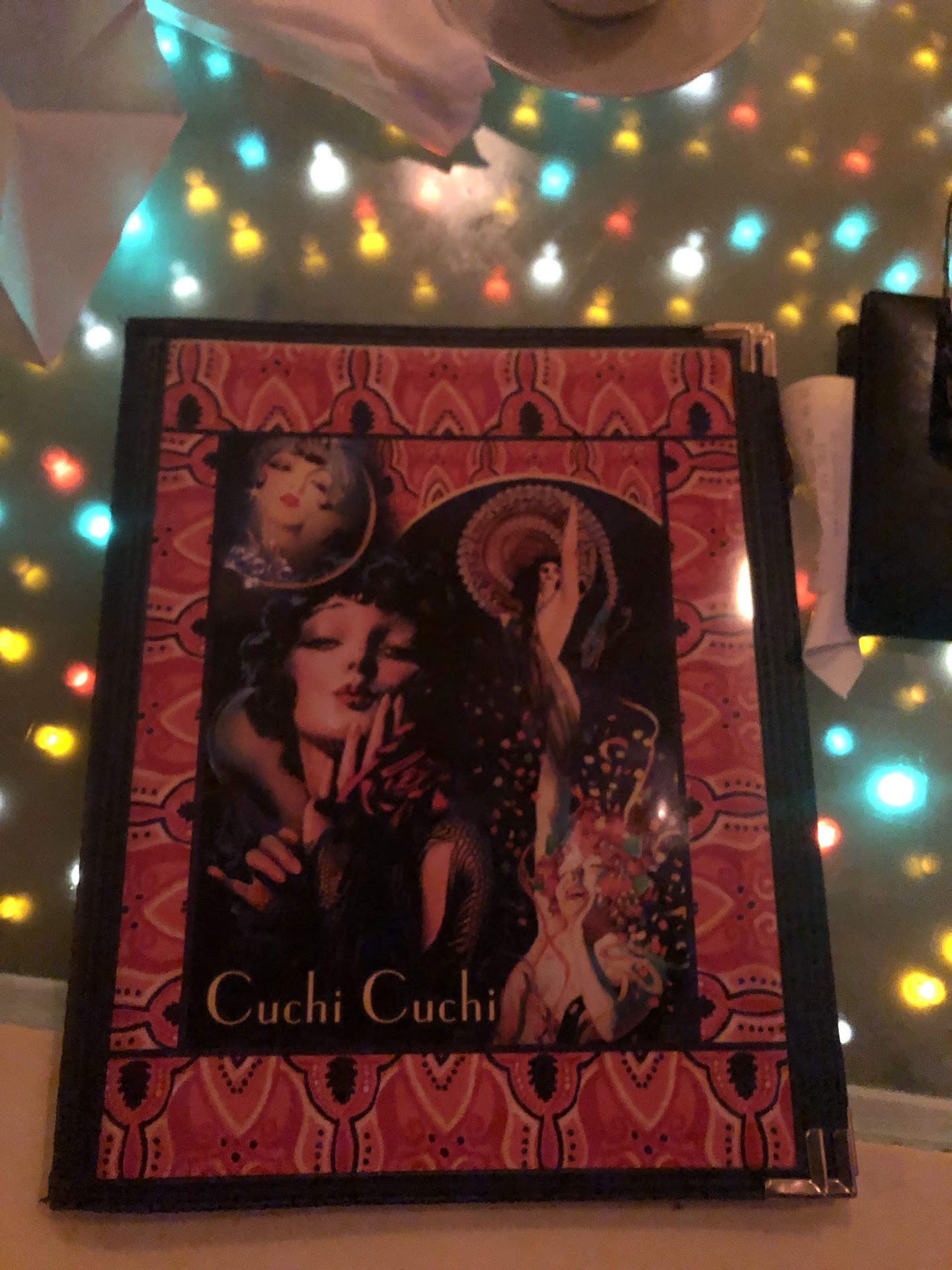 Cuchi Cuchi is so decorated and I think that it should get an award. The restaurant feels like I am at a parade. Cuchi Cuchi is fun and festive. If you like how Cuchi Cuchi is, you should go there and I bet you will enjoy it a lot!