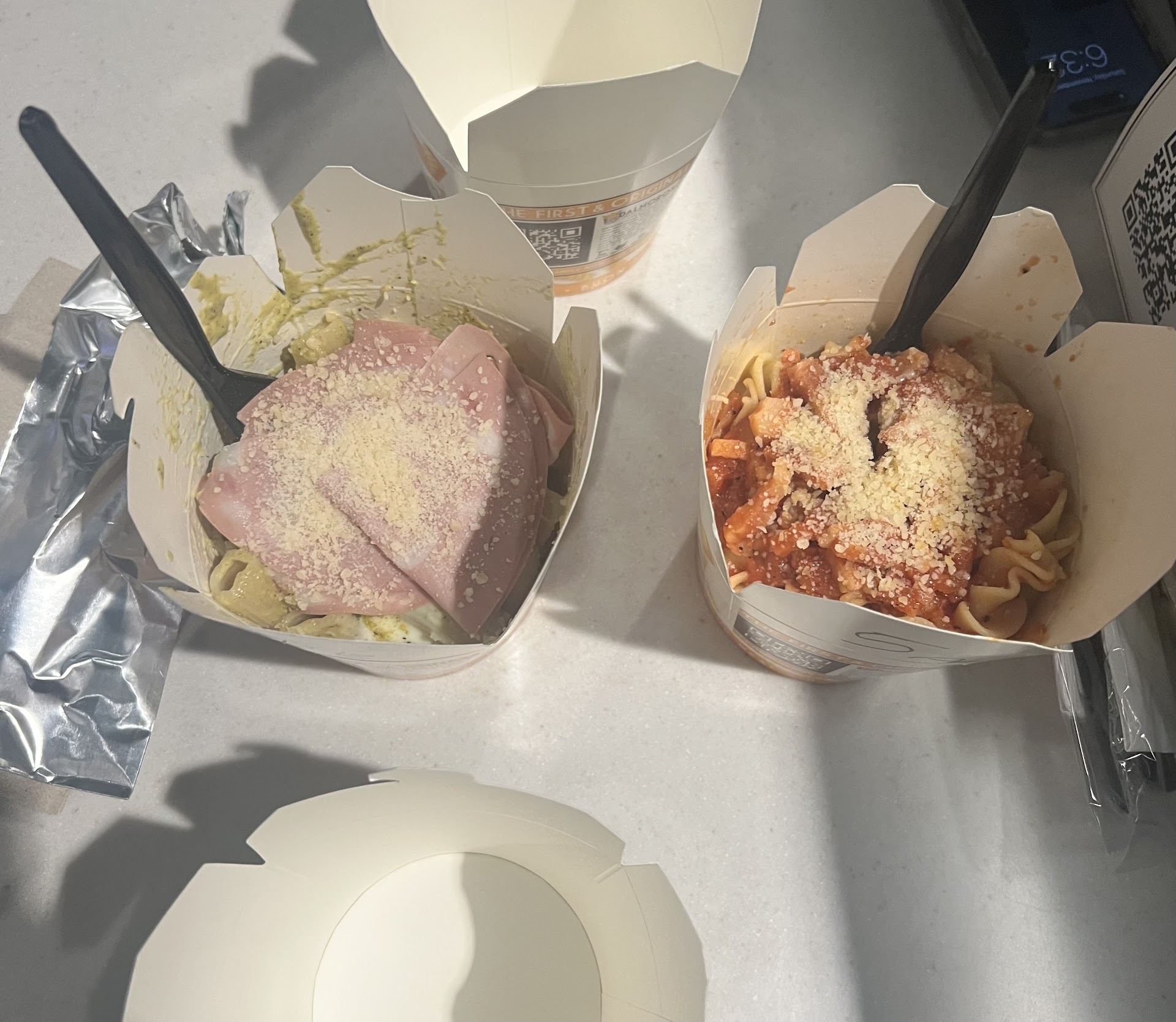 We got the Fusilli pasta with the Amatriciana sauce and the Rigatoni pasta with the Mortadella sauce (the FAVORITE). The Amatriciana was a good standard tomato sauce with pancetta. The mortadella was a light cream based sauce that had subtle pistachio and black truffle flavors with mortadella on top. The combination of the fresh pasta and the homemade sauce was wonderful! Not to mention the incredible value. If you want fresh pasta in the Boston area, itâll run you over $20. Whereas DalMoros was a generous portion for about $15. I also really like the container thy serve the pasta in because itâs easy to eat out of and easy to pack up and take any leftovers home if you have any. My friend and I didnât and actually ended up buying more to enjoy the next day!
