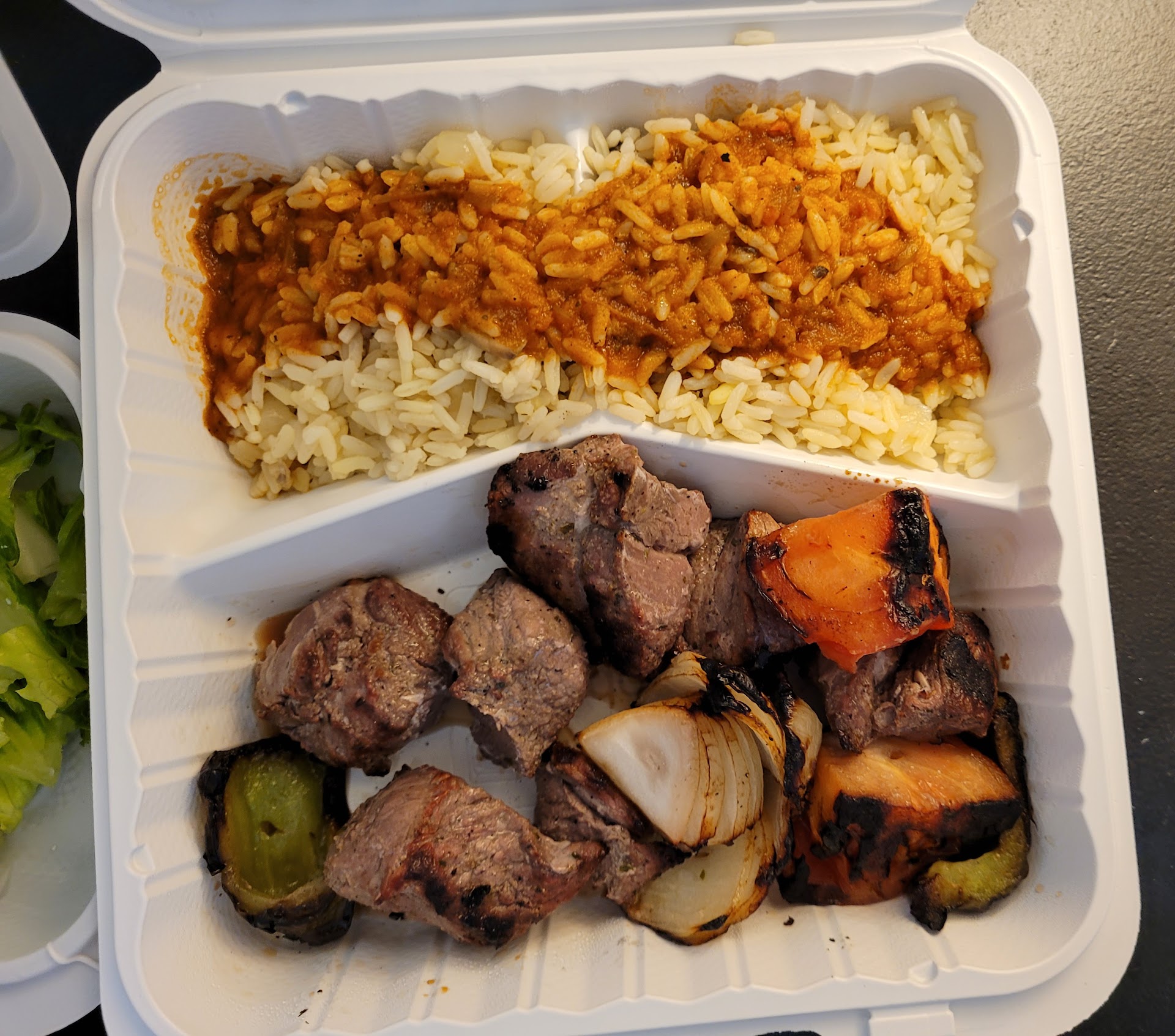 Read moreDecided on this place after reading other reviews (4.4). Went for dinner before our sunset cruise. Since we had things we needed to set down (backpack and purse, we asked to be seated on a table for 4 but they told us NO. The place was practically empty (2 other tables - a single diner and a couple at a table for 4 so why not us?). Service started out at (2 - the local non-Greek girl) but parts of it went up to (5 - Greek guy & girl when we asked for extra bread to go with Saganaki) with service speed a (3). The air conditioning hardly worked and it felt like 78~80 degrees inside where we were asked to sit. Prior to arrival, we had studied the menu and had for appetizer saganaki (lightly breaded cheese that has been lightly fried and set on fire for visual effect and adding a burnt crust) and octopus. Saganaki (5) with dense bread was awesome! Octopus (3) was mostly grilled nicely (body was but the tentacles were a little over cooked/burned) with a drizzle of olive oil but lacked seasonings as was bland. For entrees we had Moussaka (layered eggplant with cheese and meat) OPA (4) which was tender and tasty and Lamb Chops (2) which was ordered medium but came well done and dry which was a huge disappointment - It was bland to boot! We were trying to experience the Ethnic Food experience (couple of the staff sounded Greek) so part of it good part of it not so good. We give it...