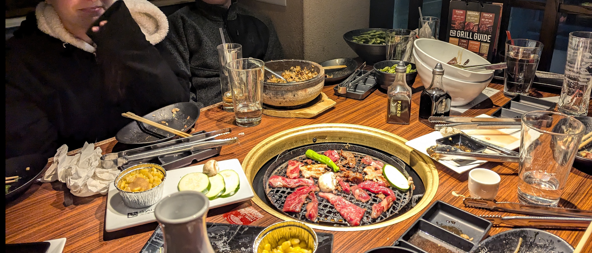 We were sat at a table for 6 people and it only had one grill. The grill only half worked and barely could cook our meat. Seated on the outside edge meant that you didn't touch the grill at all. Seating on the inside meant that you were constantly at the grill cooking everybody's food.