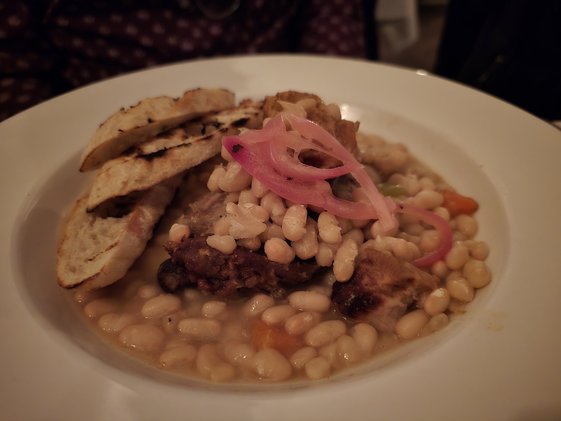 We ordered the baguette with maple whipped butter and the 5 spice pork belly to start. My friend decided on the bone-in pork chop for an entree and I had the duck breast. His chop was overcooked and very dry. I understand that there is a fine line between juicy and dry when it comes to pork chops, but this was just way over that line. My duck breast 'medium rare' was on the plus side of medium, as in closer to well done. The skin was rubbery and had not been rendered properly to be crispy and have a nice crunch. I was very disappointed in the mains! Oh and nothing seemed to have been seasoned with any salt.