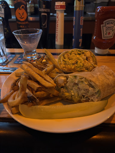 We sat at the bar, ordered a specialty Gin drink and a Shipyard Pumpkin with the caramel, brown sugar, cinnamon rim. Had the Buffalo Chicken dip as an appetizer, and yes, you have to get it! For dinner, we had Crispy Chicken wrap which my wife said was really good and I got the Cast Away burger, recommended by the bartender, with a side of sweet potato fries.