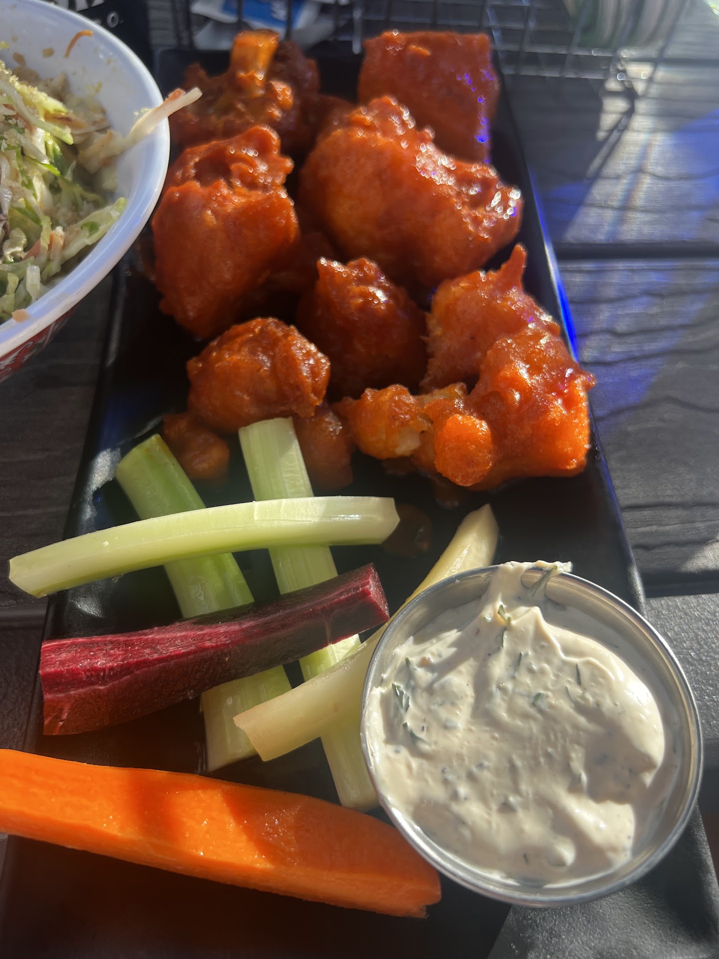 On the day we visited, a Wednesday, it was $2 a shuck oysters - briny and so fresh. What a deal! We also had the yummy chicken wings that I crave along with the incredibly crispy tater tots with house made ketchup! What?! House made ketchup?! YES! Actually, many of their dressings, simple syrups, and margarita mix are house made. Bonus! To finish, we tried the dessert special of peach cheesecake wontons. Wow, what a treat!