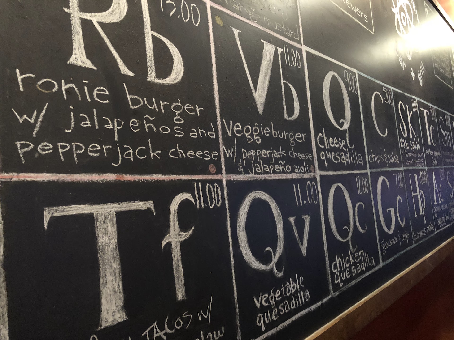 From the outside this place looks amazing, when I came in the music was on point the staff was friendly and 3 of us were able to be seated even though place was packed. I really enjoyed the ambiance. I was the last to arrive and one of my friends told me they didn't have a paper menu and that instead their menu was on the wall in the form of a Periodic Table if elements... not gonna lie, given it's proximity to MIT and the name of the place I found this be so cool and dope and highly appropriate.