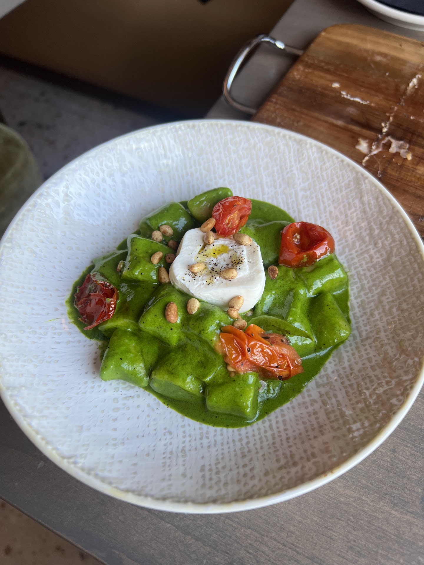We initially had a hard time picking appetizers as the menu didn’t have many intriguing options. Eventually, we settled on the whipped ricotta and pepper-crusted beef carpaccio, and both turned out to be excellent choices. The whipped ricotta, served with a side of smoky grilled bread, paired beautifully with the natural sweetness of silan (date honey). Meanwhile, the beef carpaccio, carved fresh from the kitchen, was a classic dish topped with fried capers, arugula, parmesan, and lemon. It was a refreshing and enjoyable dish—definitely worth the wait.