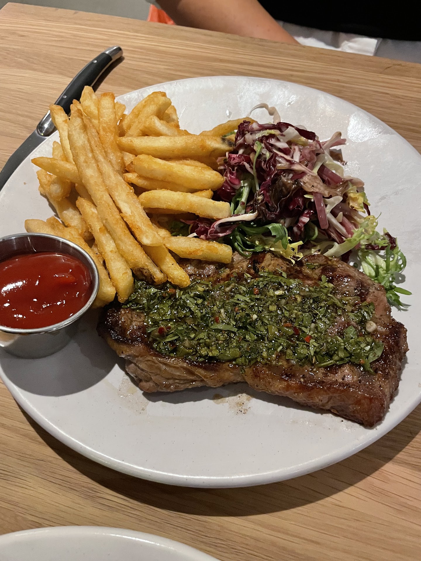 Read moreWe went for their gluten free night, which is awesome to be able to order anything on the menu! We tried the mac & cheese bites, the arancini bites, steak frites, pork chop, and chocolate crème brûlée. Both types of bites were plated the same way and looked identical, so it was difficult to know which was which, but both were very tasty. The steak and pork chop weren’t my favorite flavor wise. The crème brûlée was really good though. Staff were...