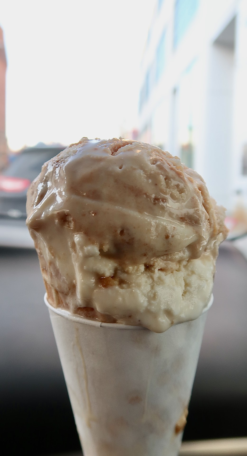 I was able to sample a few flavors and ultimately decided on the tres leches and baklava on a homemade waffle cone.