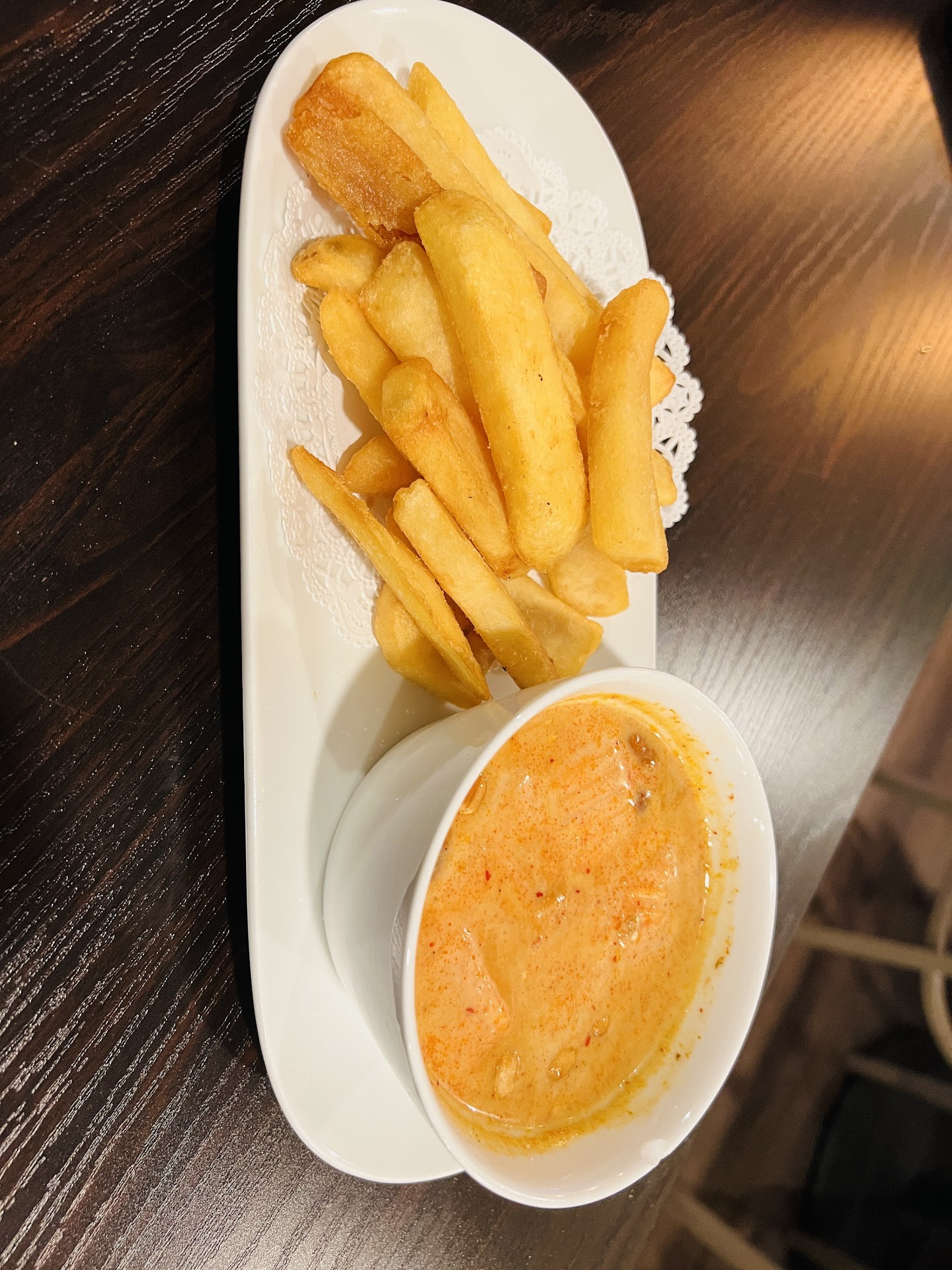 Summer Lover, aka. Steak fries + small bowl of coconut soup for $10.95⦠I understand itās inflation time, but for about 15 slices of fries (one of them so over fried that they donāt even bother to pick it out), and a bowl of soup as a dip? Who uses soup as fries dip? Itās too watery to have fries pick up any soup and the taste together is just strange. A 100% rip off.