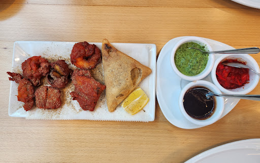 On my most recent visit, I tried Passage Mixed Appetizers, Shrimp Biryani, Goa Shrimp Curry, and Chicken Tikka Masala. An assortment for samosa, pakoras, and aloo tikki, the Passage mixed appetizers was a satisfying start to the meal. Although a touch over-seasoned, the selection of dipping sauces provided balance.