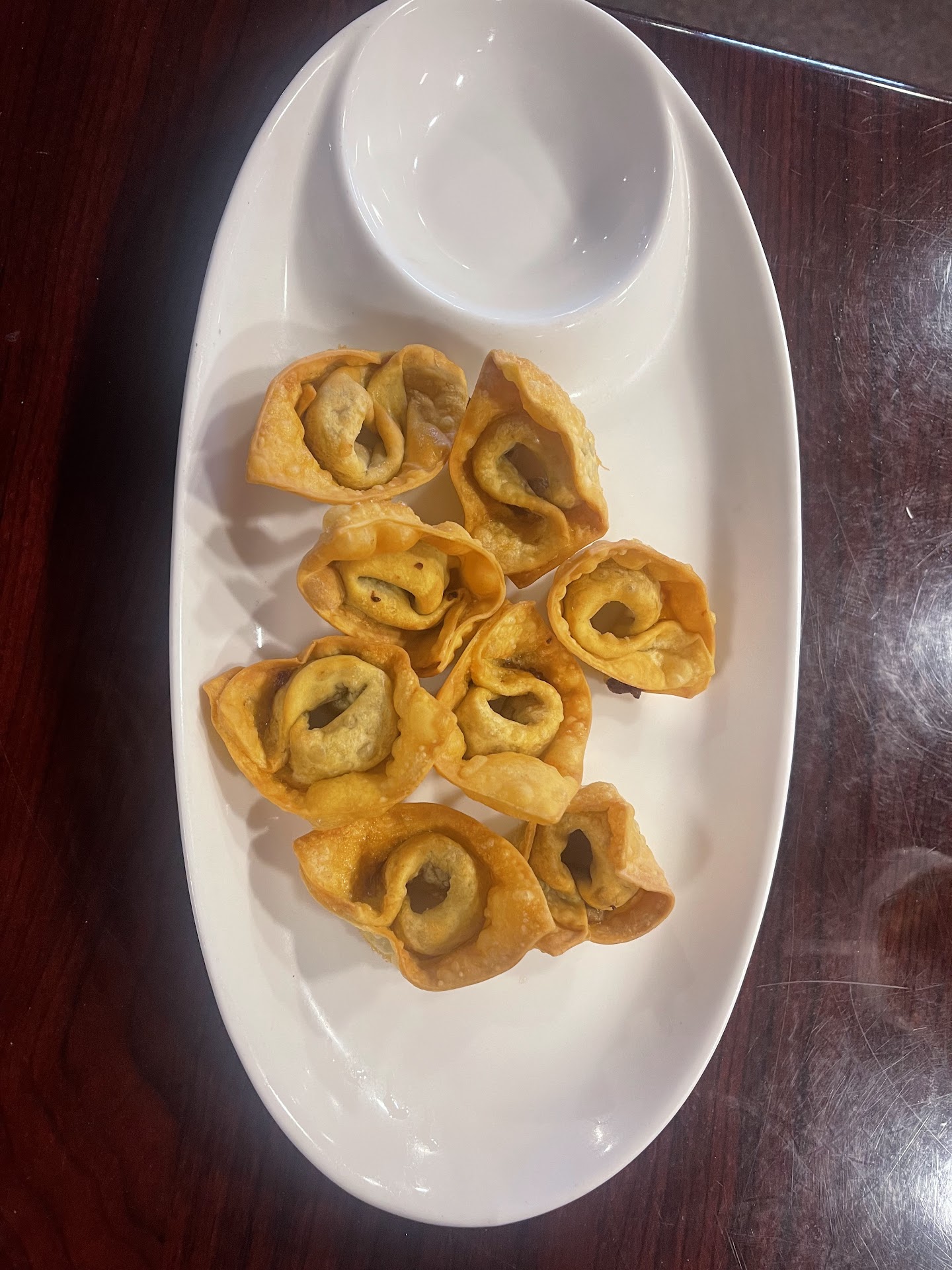 The fried wontons came out at 6:50 PM, but they were super dry and tasteless. I had to drink a lot of Dr Pepper just to get them down.