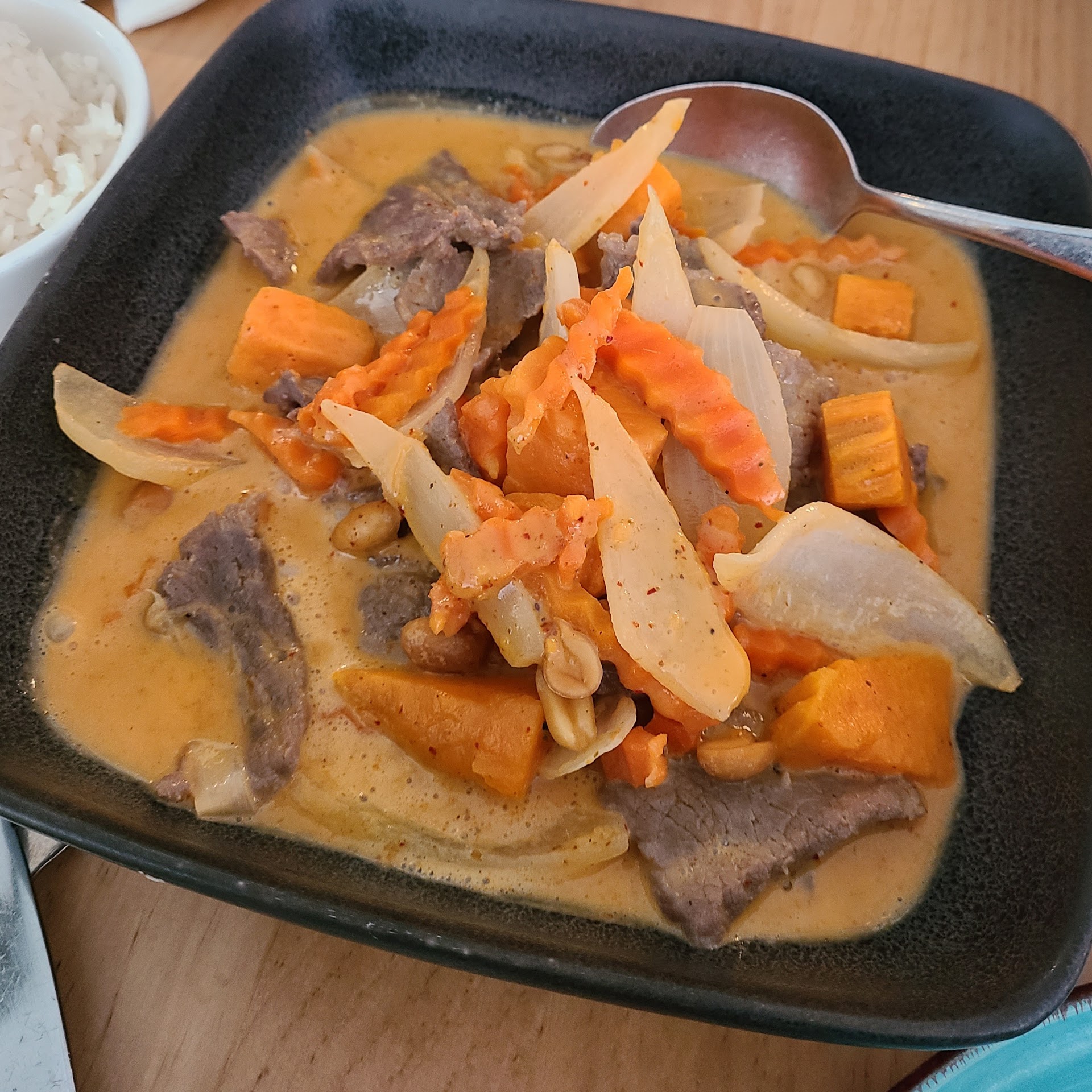 Everything my friend and I had here was very mid, ranging from the soup to the curry, especially since we ordered four of the most staple kinds within the Thai cuisine realm. There's a positive aspect which was that they gave an abundant amount of food, as the pictures could show how much they stuffed their bowls and containers with meat and vegetables. But in terms of taste and everything else, it was okay.
