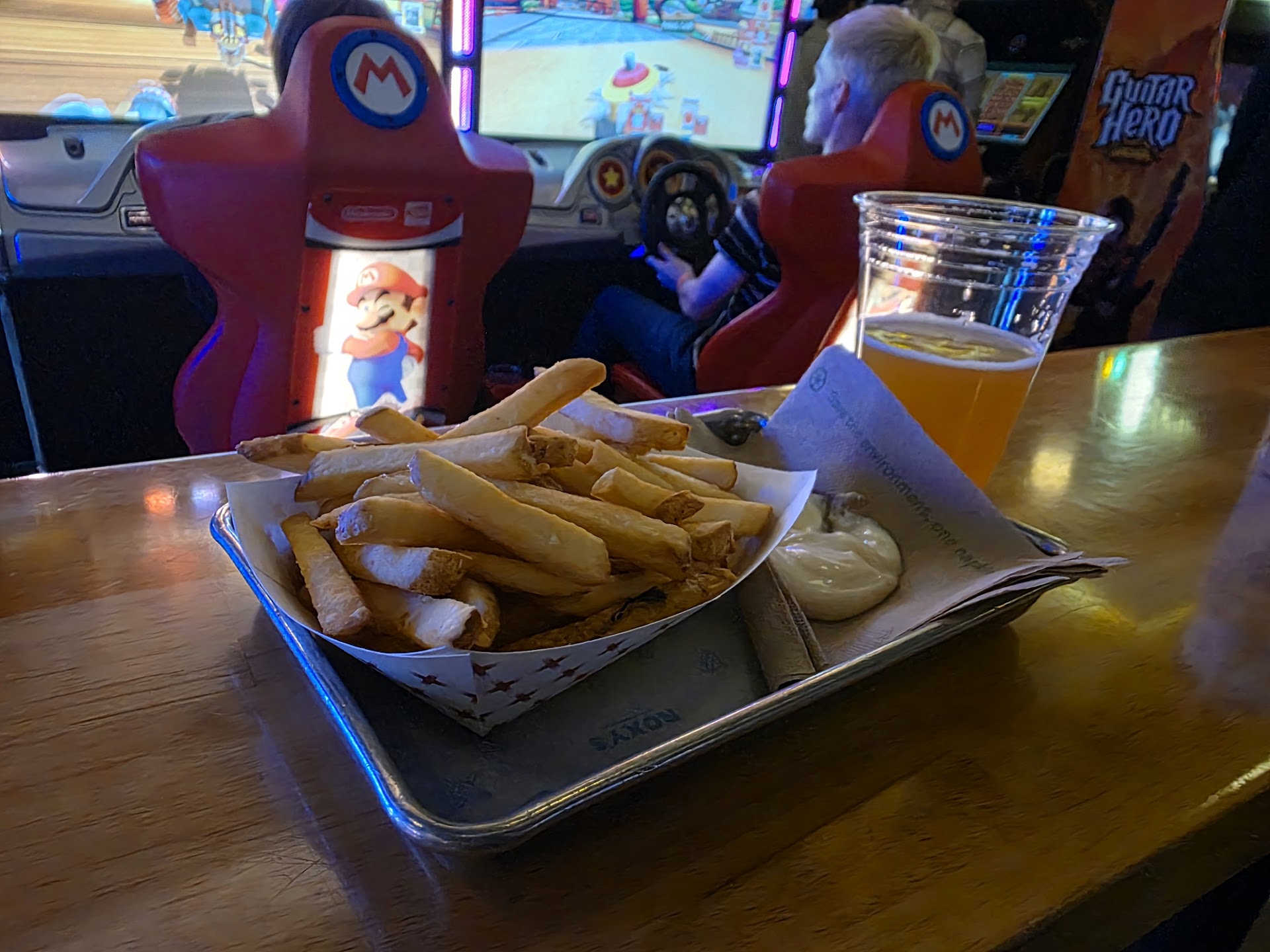 A4Cade is a fairly small room packed with Arcade games, from pinball, to pop a shot, to ski ball (as well as Mario Kart!). You can order drinks at the bar and then buy tokens to use the game. For $5, you get 20 tokens and games cost between 2 and 4 tokens. I was surprised that they didn't offer incentives to buy more tokens. $5 was for 20, $10 was for 40, and so on. I would charge less per token for larger quantities but also they seem to be doing fine so who am I to point out improvements.