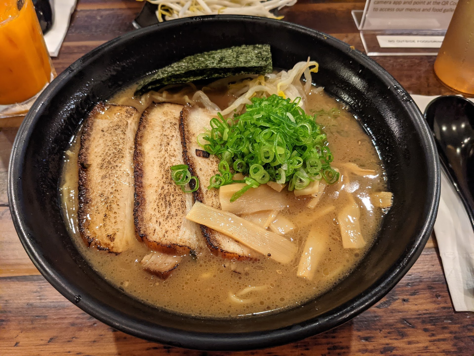I wasn't expecting much from Soup Shack given their diverse menu (ramen, pho, thai noodle soups), but I was pleasantly surprised. The fried oysters were excellent -- freshly fried and crispy, large juicy oysters. The thai iced tea was pretty standard. The Pho Tai (rare steak) broth was good, but the steak was a bit lean and tough. The shoyu ramen had a decent broth though a bit porky for my tastes -- I asked for the least sweet of the ramen broths and it definitely wasn't sweet so that was nice (they said that all of their other broths were sweet to some degree)! The portion sizes are huge and I left clutching my stomach. The bok choy side addition ($3) is generously sized and fresh. There are tons of noodles and a decent amount of other toppings as well. The broths are good but not amazing, and the noodles and toppings are also standard.