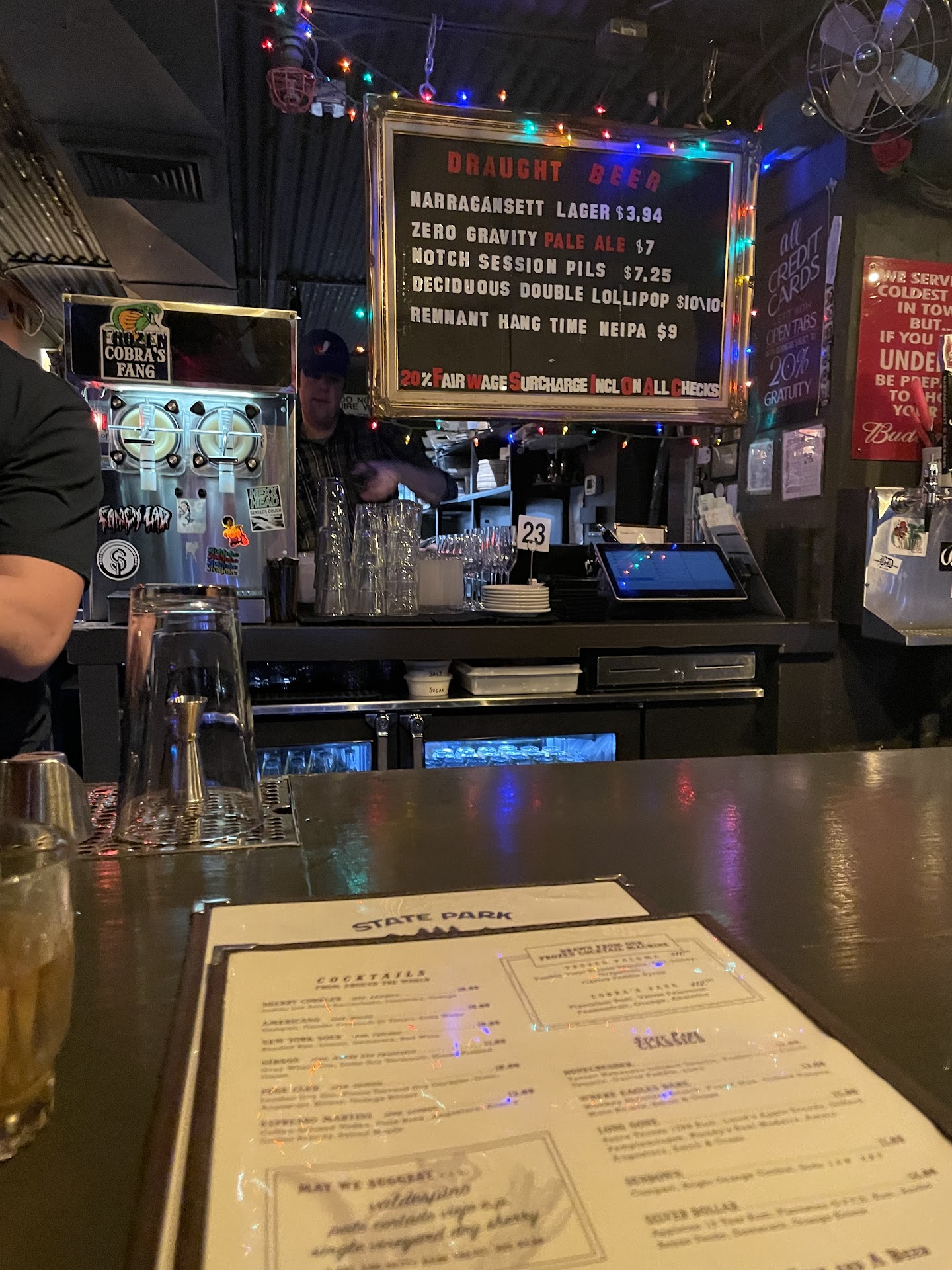 State Park is unfortunately the closest bar/restaurant to my work, and I really wish I liked it more. It has so much potential, but there are a few things that consistently make it a disappointing experience. The biggest issue is their seating policy. Even when it's practically empty, like on a Monday afternoon, they seem reluctant to seat people unless they're ordering a full dinner. Sometimes I just want to grab a quick drink and a small bite at the bar after work, but it feels like they prioritize dinner reservations above all else.