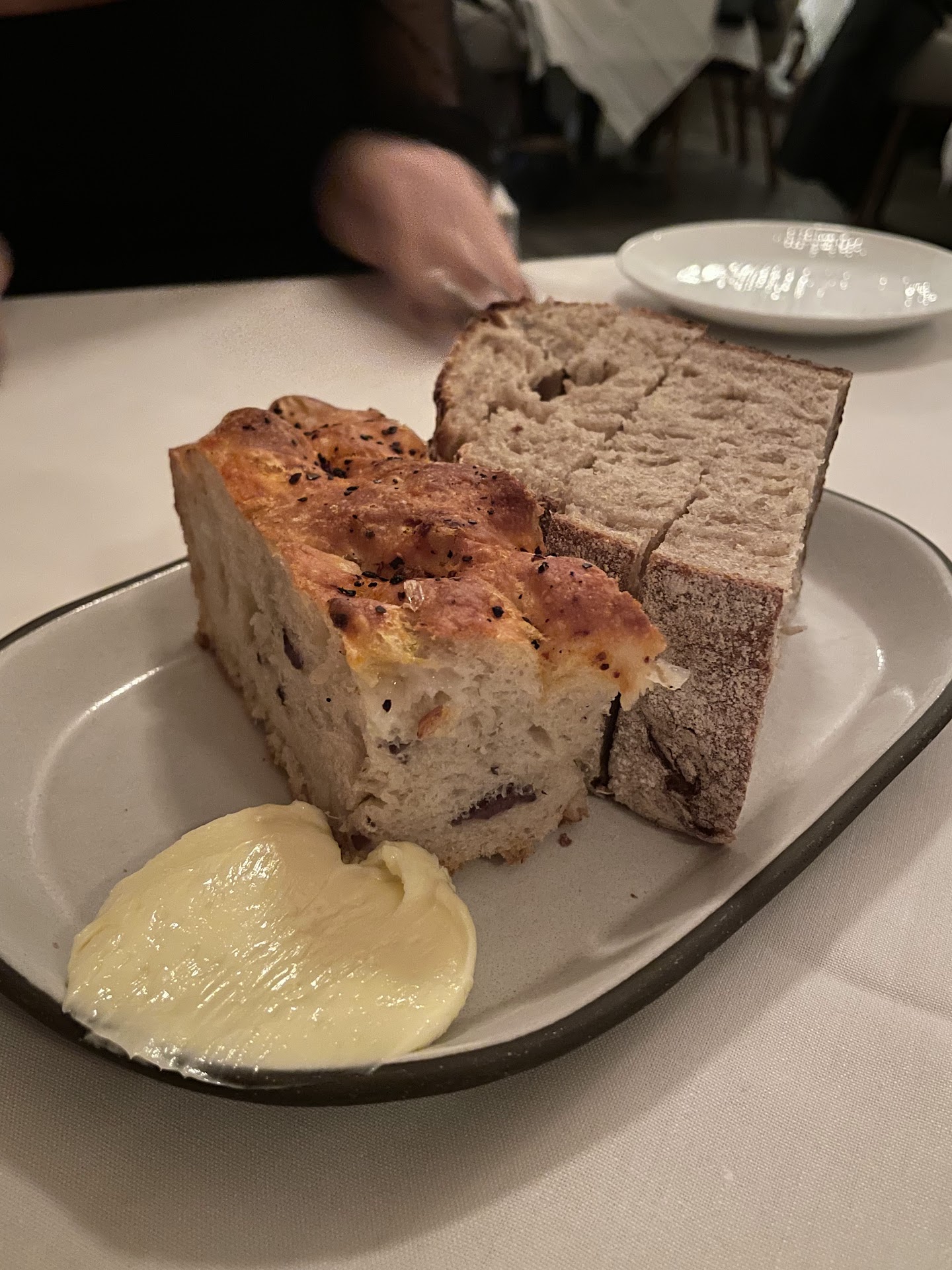 Food: I came with a friend and we both got the tasting menu with the bread basket to start. The bread and butter was actually excellent and the best part of the meal. The opening appetizer was raw scallops, and that was actually quite nice, as it had a floral and peppery taste to it. The 2nd course was fois gras with (more) bread. Perhaps this is where I wish we didn’t start with the bread basket, as the bread with the foie gras seemed like cheap white toast in comparison. The foie gras itself, I felt was ruined. Perhaps I am a purist, but whatever gelatin and berry mix they made with the foie gras taste overly acidic and fruity and took away from the rich, earthy, buttery-ness that one would expect. Next up was the pasta - I had squid ink cavatelli and my friend had the lobster pasta. Both portions were laughably small and the lobster dish was bland; overall nothing special and we both felt we would get a much better dish at any other restaurant. The protein was a short rib, which was too salty, and again, felt like it lacked novelty. Finally was desert, which again was very bread forward with 2 dense brownies for each serving - again, nothing novel, and we could barely swallow it after what felt like such a bready meal as is.