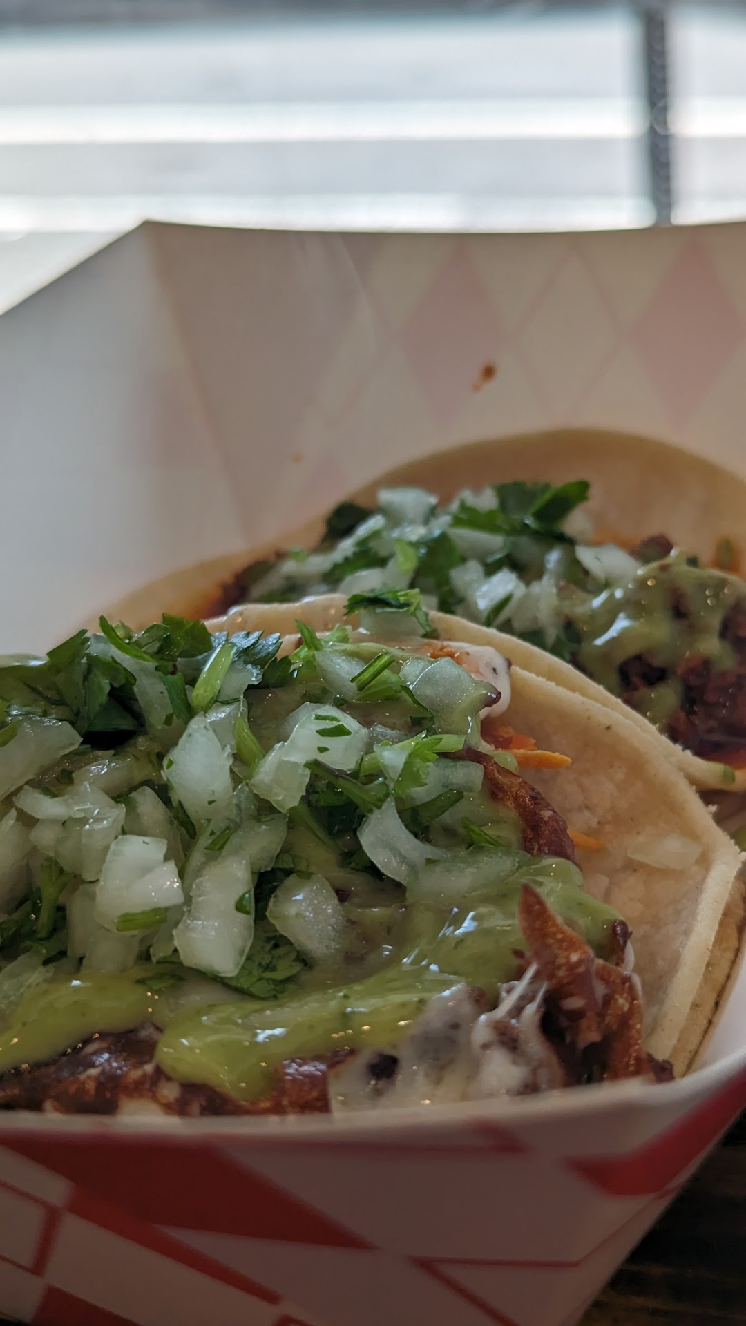 But alas, dear reader, my tale takes a somber turn from here on out. Picture, if you will, tortillas plucked straight from the Sysco rack—dry and devoid of flavor. If I were told they were gluten-free, I'd have believed it without a second thought. These tortillas were so thick that using two of them became excessive, bordering on criminal, as they detracted from the true taco experience.