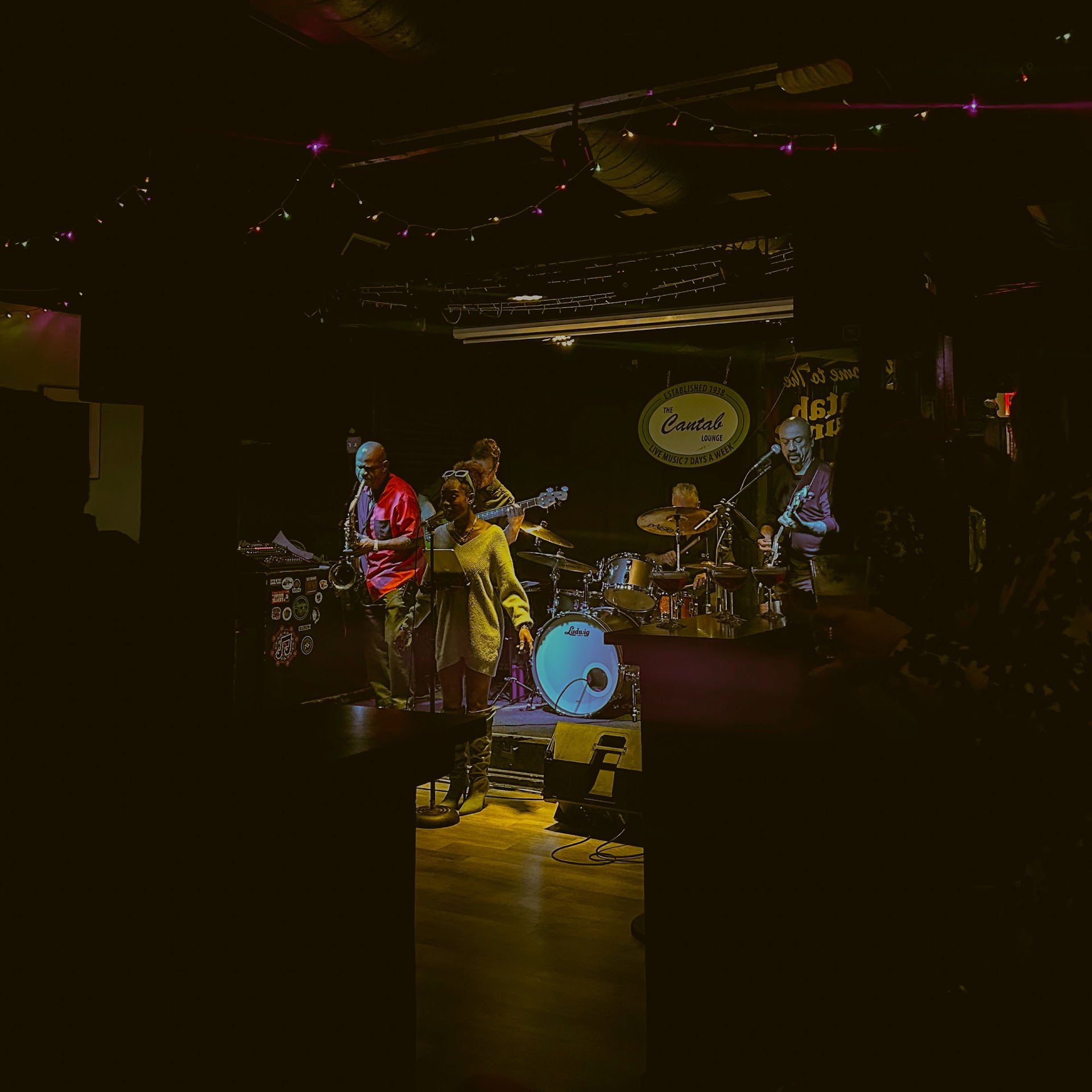 Clean bar runs the length of the room, good beer selection, good prices. The Jazz band became a blues band, and a set break later, the dance floor was full of people grooving and singing along to soul standards.