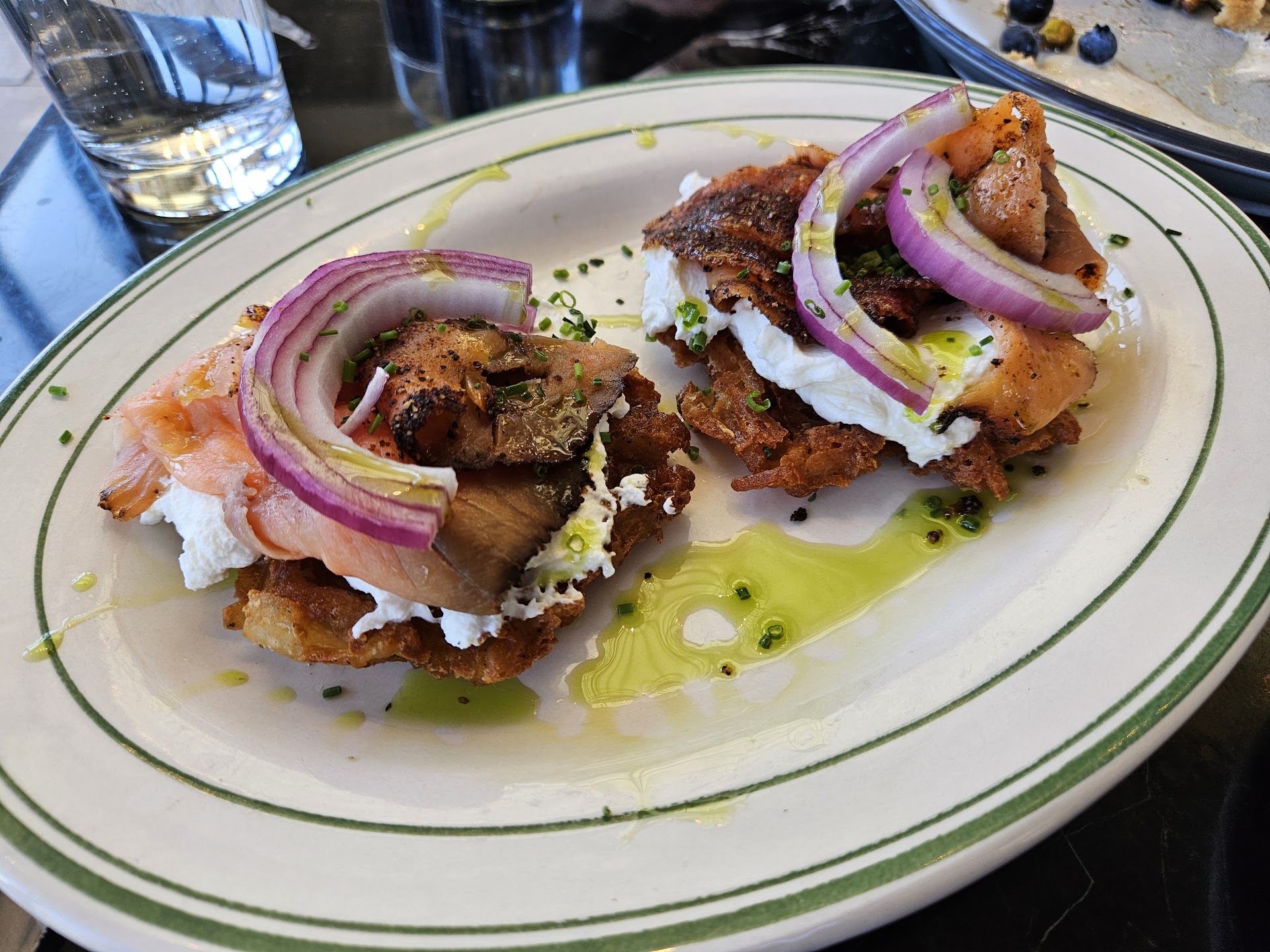 I recently got to try their brunch on a Saturday afternoon. The menu was a quintessential example of contemporary American brunch fare, and overall, the dishes we chose were good. Highlights for me included the Smoked Salmon and the Sourdough French Toast. The salmon was served atop a crispy mini potato waffle, with the addition of sour cream and red onions complementing the smoked fish perfectly. As for the French toast, while it teetered on the edge of being soggy, its softness surprisingly paired well with the richness of vanilla bean cream and the fresh berries.