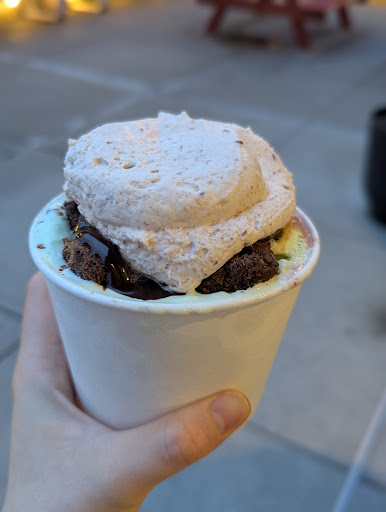 This is a decent ice cream shop that tries way too hard. The signature sundae menu probably originated with an investor asking ChatGPT for a menu that would maximize instagram views. I don’t need a big poop-emoji of frosting on top of my already-too-sweet ice cream. Not every sundae needs sprinkles or chocolate chips. The “cookie dough core” sounded good but was just underwhelming nubs of cookie dough at the bottom of the cup. My “mini” ice cream with two toppings was over $12 before tip. I’m perplexed at why every topping is a different price, and why whipped cream costs more than $2.