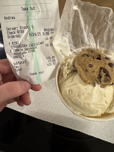 If for some reason you choose to go here, DO NOT order the cookie sandwich. It’s nothing like the images, and it’s a waste of 8.99+tax and tip. It’s a small cookie dunked in 2 large scoops of ice cream, very misleading to compared the menu image. There isn’t even a second small cookie in the cup, so it doesn’t qualify as a weirdly portioned sandwich either.